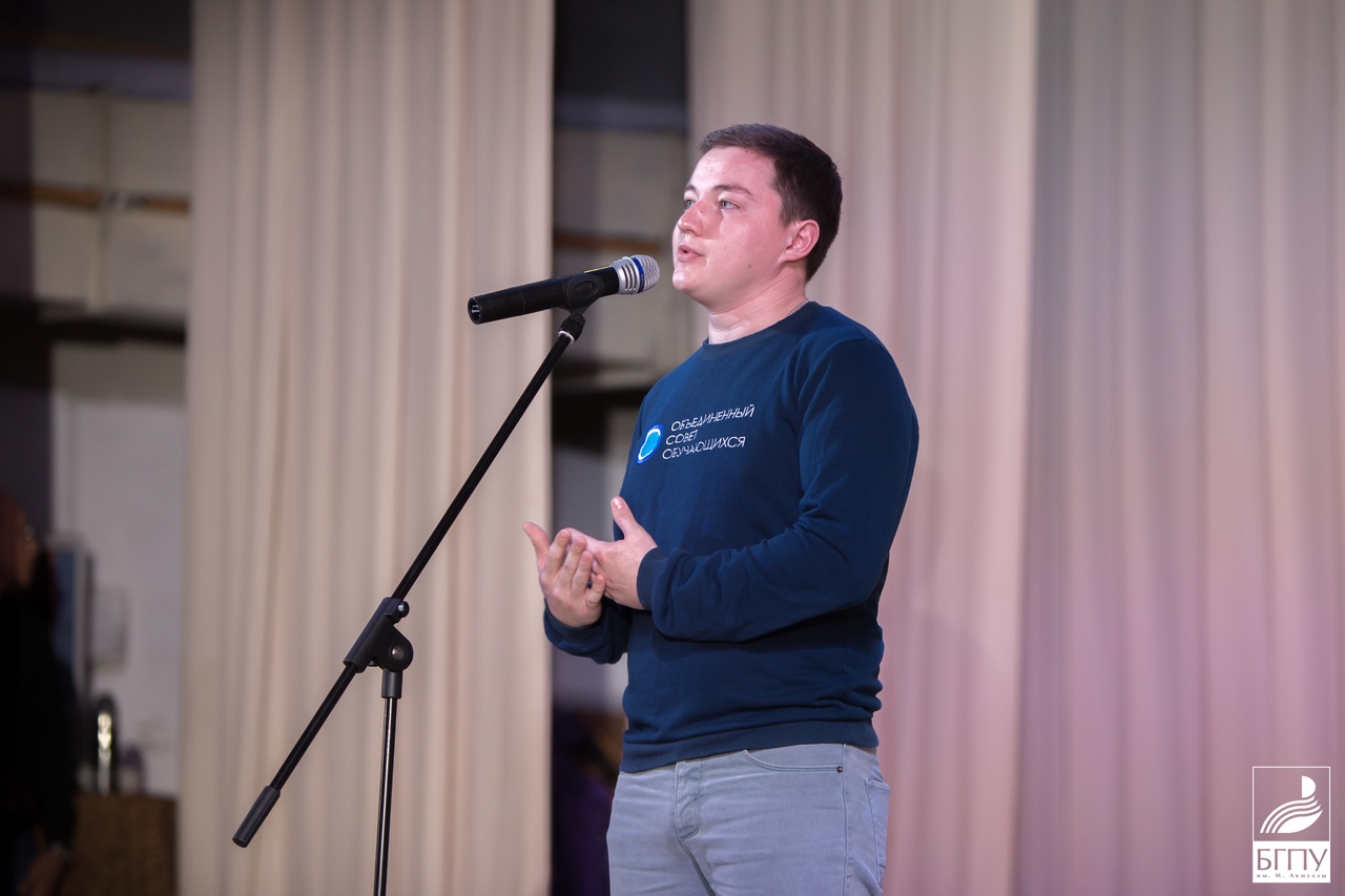 Далее перед будущими студентами выступил председатель объединенного совета обучающихся БГПУ им. М. Акмуллы Артем Игдеев. Он рассказал об активной работе совета, деятельности творческих и общественных объединений студентов, о том, как студенты старших курсов помогают первокурсникам адаптироваться к новой жизни.