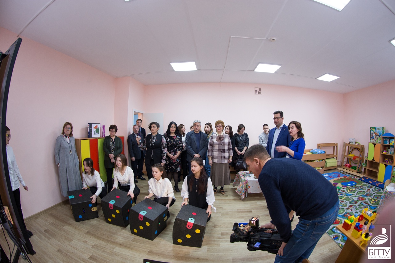 В настоящее время в Акмуллинском университете уже определены 10 мастерских.  Заведующая кафедрой дошкольной педагогики и психологии Ирина Боронилова провела для ректора БГПУ Салавата Сагитова и гостей презентацию мастерской по компетенции «Дошкольное воспитание». Помещение для данной компетенции оснащено высокотехнологичным оборудованием: интерактивные песочницы и столы, глобус, а также кубы iMO-LEARN. Студенты продемонстрировали фрагменты заданий демонстрационного экзамена: методику проведения дидактических игр с интерактивными кубами IMO, технологии работы с интерактивными столами и доской, интерактивной песочницей, а также задания по физическому развитию и выразительности чтению на базе мастерской WS.