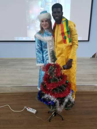 Представители Алжира, Анголы, Египта, Йемена, Китая, Колумбии, Марокко, Нигерии, Сенегала, Сомали, Турции, Узбекистана, Туркменистана, Эквадора, ЮАР, изучающие русский язык в нашем университете, праздновали Новый год согласно российской традиции. Слушатели водили хороводы вокруг елки, пели новогоднюю песню «В лесу родилась ёлочка», отгадывали загадки. Дед Мороз дарил подарки за исполнение музыкальных номеров.