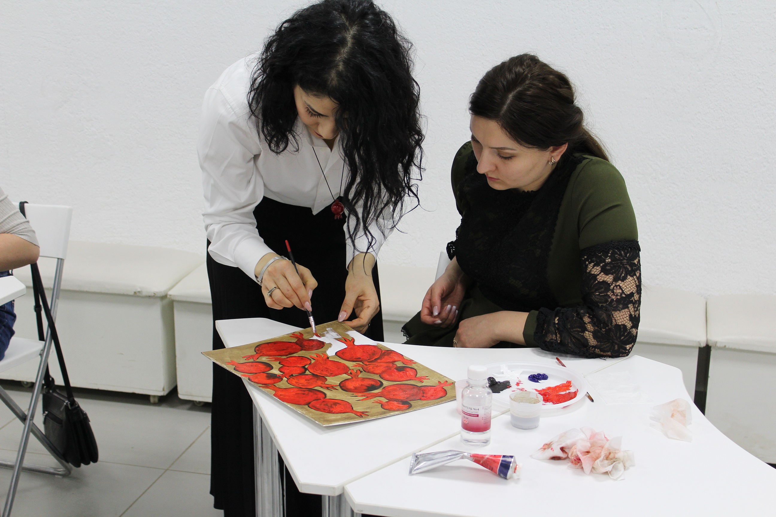 В рамках выставки-конкурса "Моя малая Родина: прошлое, настоящее, будущее" запланирована программа мероприятий для участников, победителей конкурса и студентов. Лиана Мкртчян с удовольствием согласилась поделиться опытом с молодыми художниками.