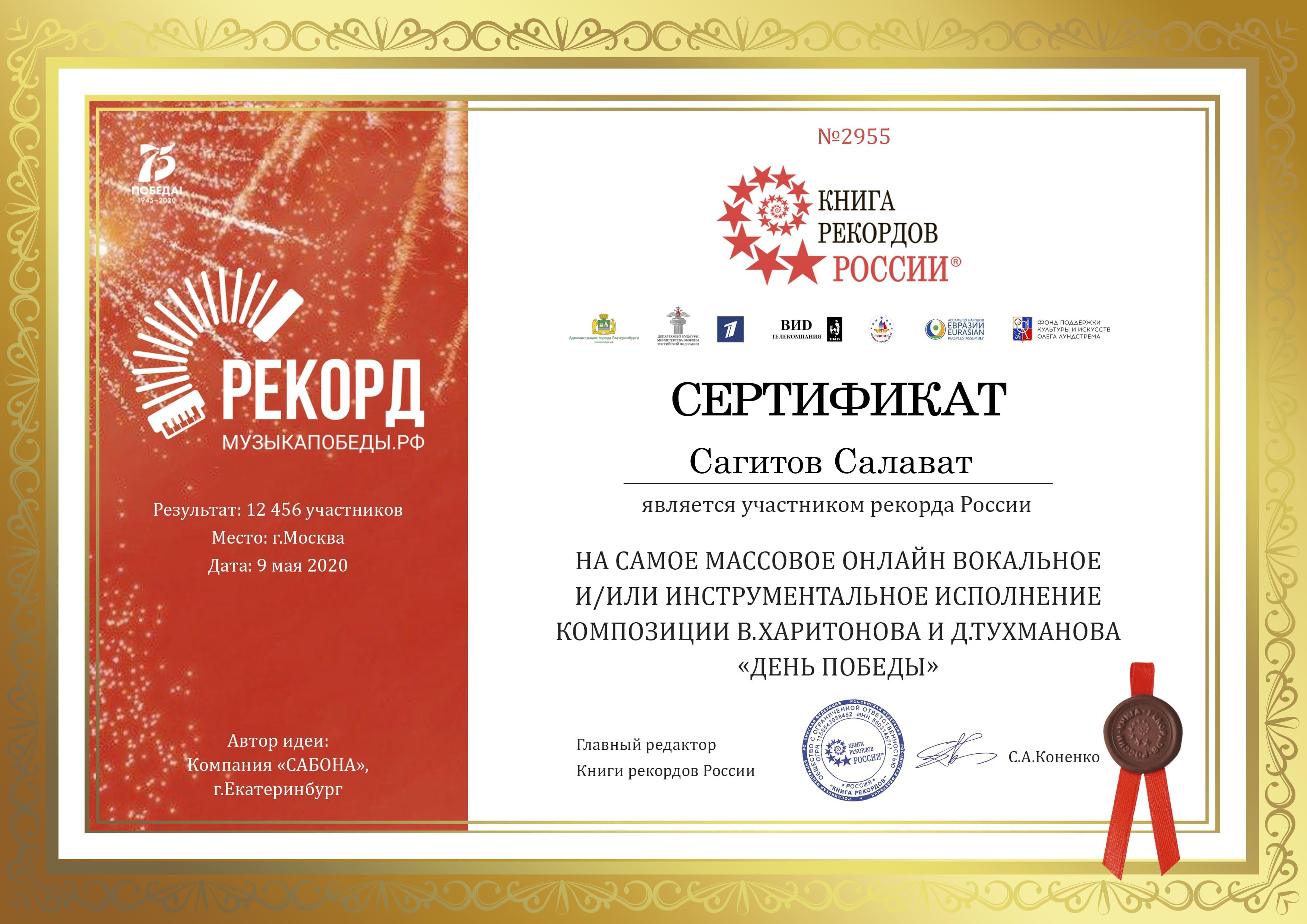Все участники-исполнители композиции «День Победы» удостоены сертификата Книги рекордов России.
