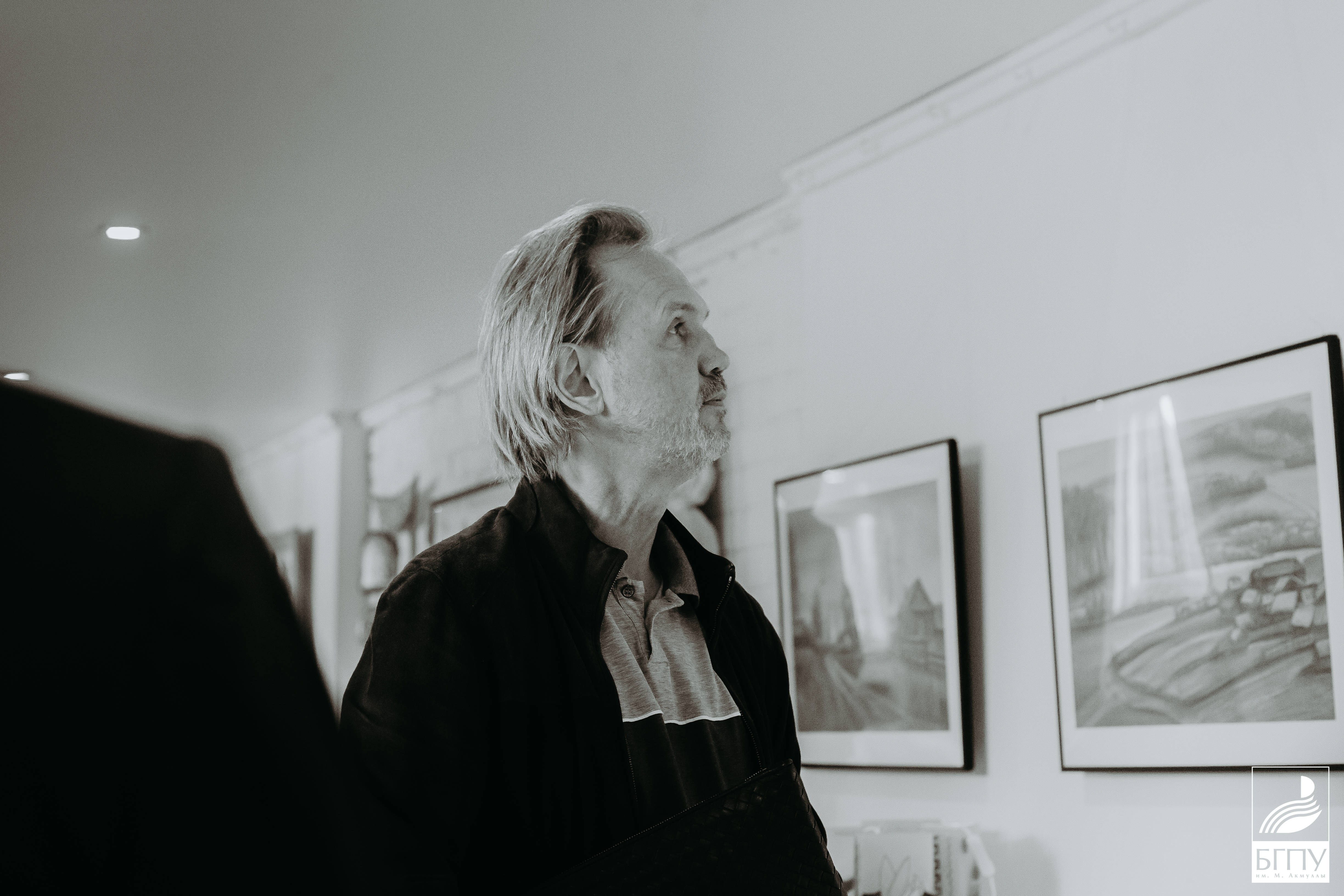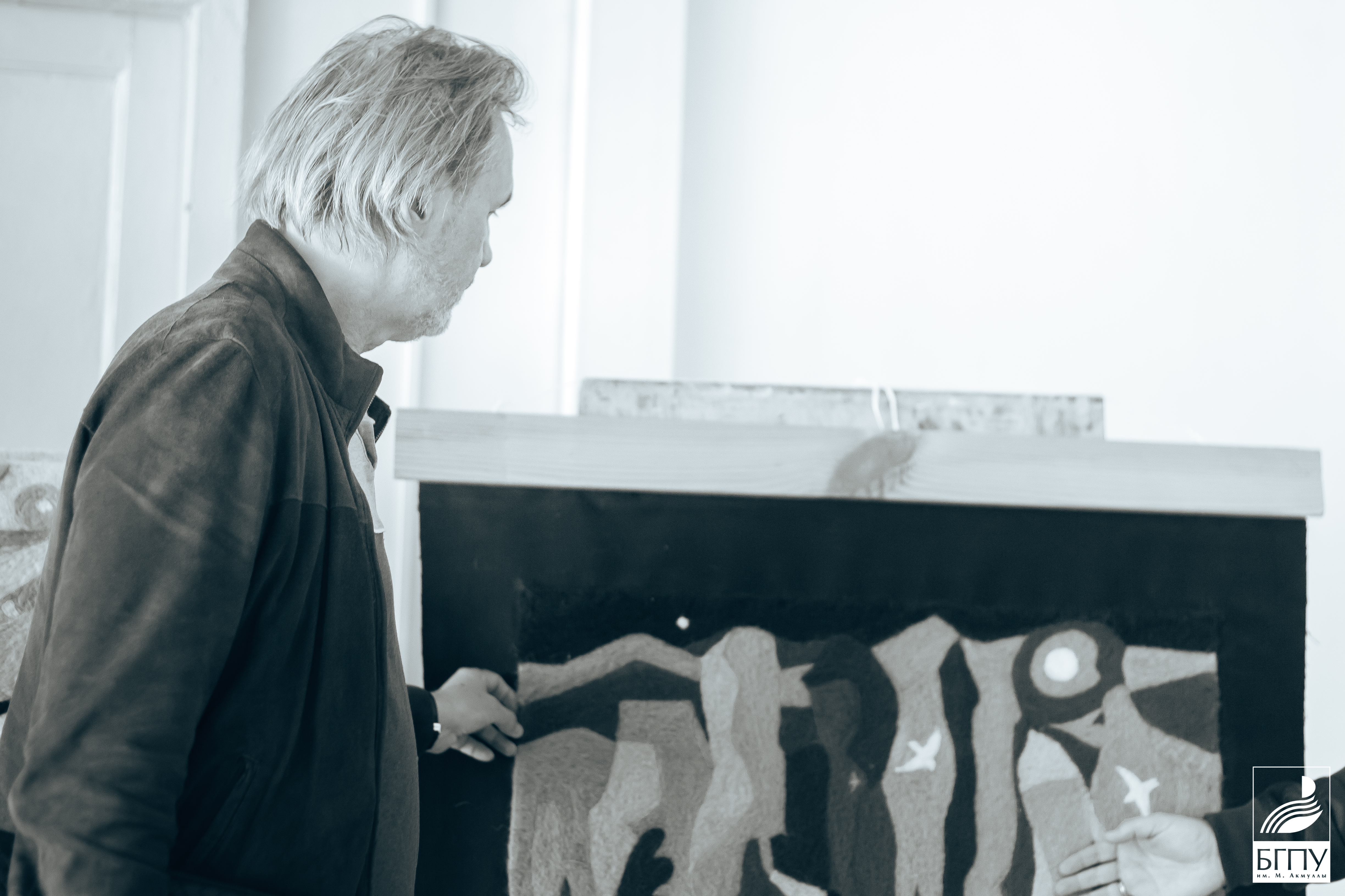 Также Тимербулат Каримов и Андрей Ковальчук посетили художественно-графический факультет университета, где осмотрели выставку работ студентов и выпускников факультета. Богатая коллекция художественных произведений впечатлила гостей, особый интерес вызвали работы из войлока.