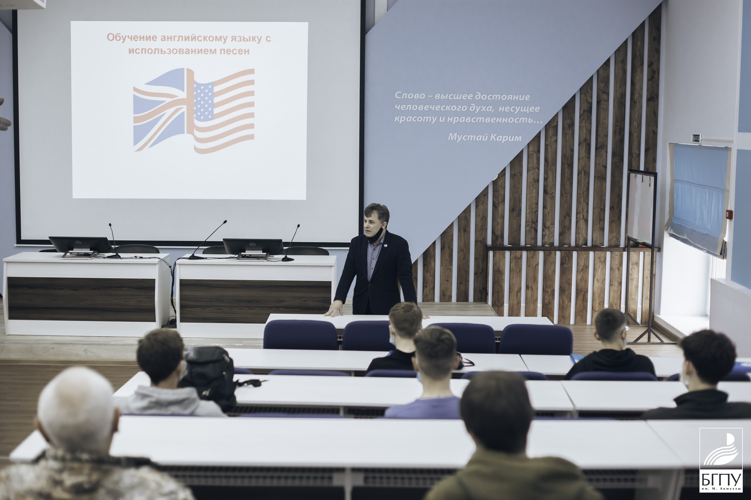 Валерий Факильевич обратил внимание школьников на возможности иностранного языка в познании духовной, культурной и политической жизни стран изучаемого языка. В интересной и увлекательной форме выпускники Дюртюлинской школы научились вести разговор с представителями паспортного контроля в международном аэропорту, узнали о способах установления контакта с афроамериканцами, о расовой дискриминации в США и о проходящих там выборах. Со школьниками была проведена лингвокультурологическая викторина.