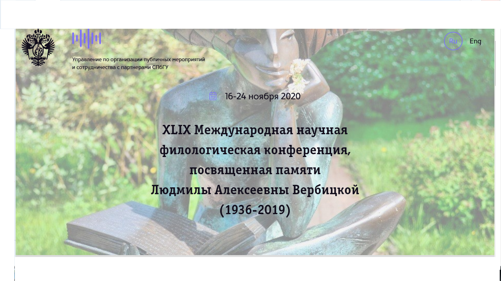 С 16 по 24 ноября 2020 года в Санкт-Петербургском государственном университете проходит XLIX Международная научная филологическая конференция, посвященная памяти Людмилы Алексеевны Вербицкой (1936-2019).