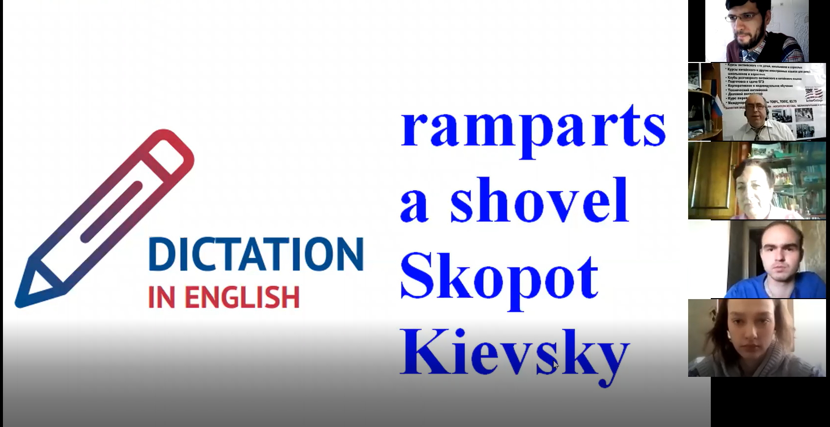 В этом году тематика диктанта была связана с 75-летием Победы в Великой Отечественной войне. Коллектив кафедры выражает огромную благодарность доценту Вячеславу Дмитриевичу Швайко (уже несколько лет отвечающему за диктовку текста), который в очередной раз поразил всех присутствующих своим языковым мастерством и чарующим британским акцентом!