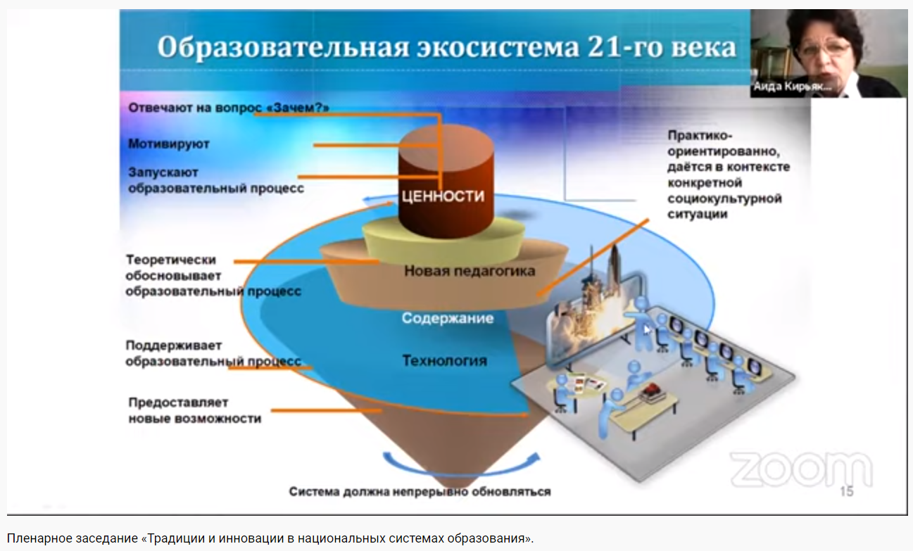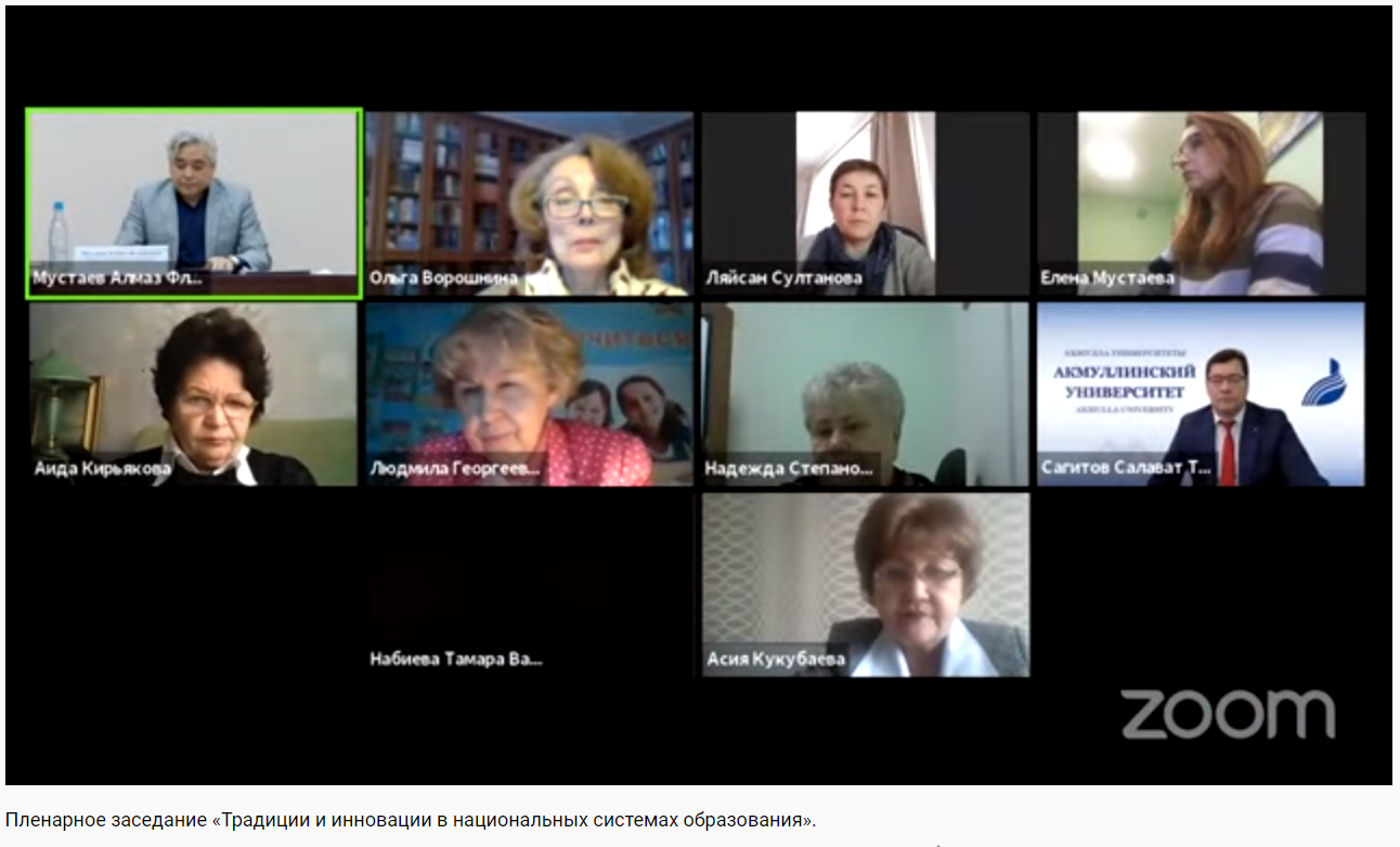 В ходе Пленарного заседания были заслушаны доклады А.В. Кирьяковой (Оренбургский государственный университет), И.Д. Фрумина (Институт образования Национального исследовательского университета «Высшая школа экономики»), О.Р. Ворошниной (Пермский государственный гуманитарно-педагогический университет), Л.Г. Петерсон (Институт системно-деятельностной педагогики), Т.С. Сламбековой (Евразийский национальный университет им.Л.Н.Гумилева, г.Нур-Султан, Казахстан), А.Х. Кукубаевой (Кокшетауский университет им.А.Мырзахметова, г.Кокшетау, Казахстан), А.С. Гаязова (Академия наук РБ), Н.С. Сытиной (БГПУ им.М.Акмуллы)