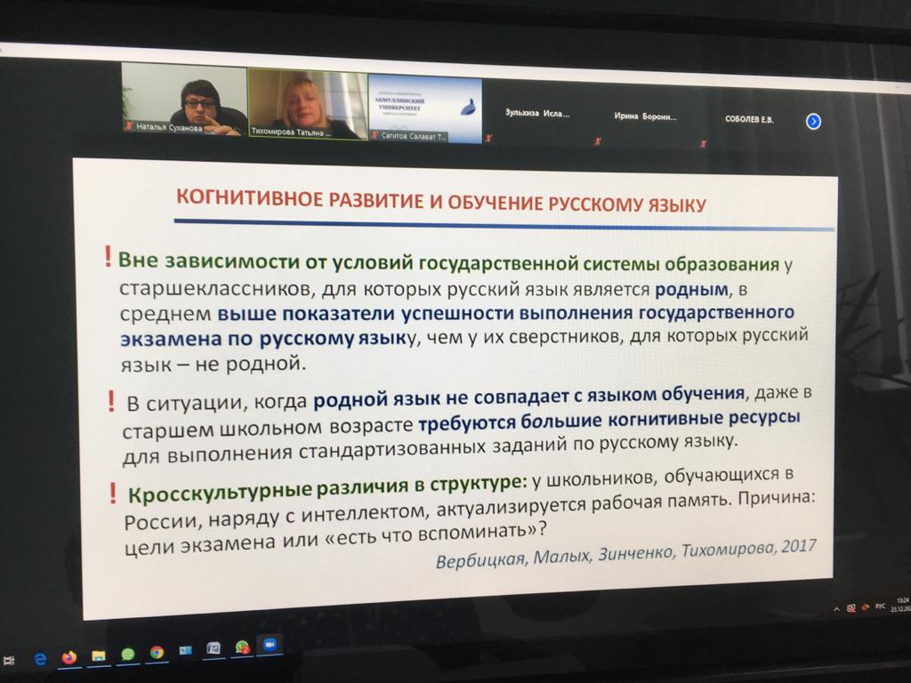 23 декабря 2020 года в Башкирском государственном педагогическом университете им. М. Акмуллы прошел научно-методический семинар в онлайн формате с участием члена-корреспондента РАО,  научного руководителя Федерального ресурсного центра психологической службы в системе образования РАО, доктора психологических наук, профессора МГУ имени М.В. Ломоносова, главного научного сотрудника БашНОЦ РАО  БГПУ им. М. Акмуллы Татьяной Николаевной Тихомировой.