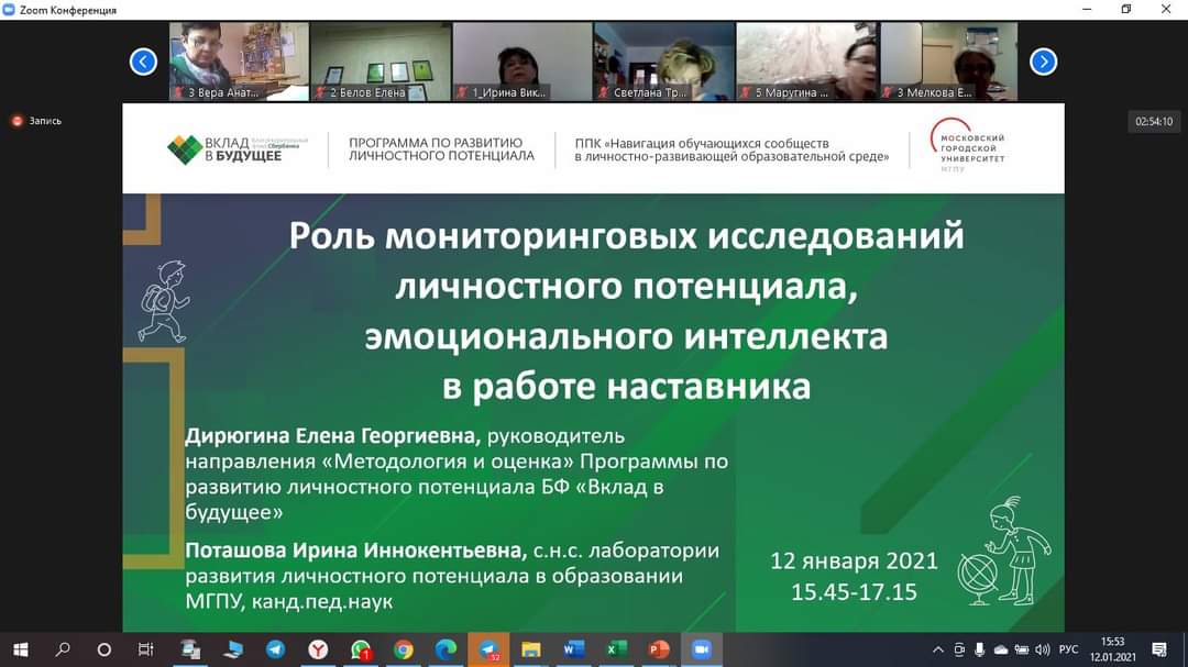 Благотворительным фондом Сбербанка «Вклад в будущее» и консорциумом «Развитие личностного потенциала в образовании» была организована проектная деятельность по теме наставничества. Она прошла 12-14 января 2021 года в рамках 2 модуля обучения педагогов из Ярославской и Калужской областей.
