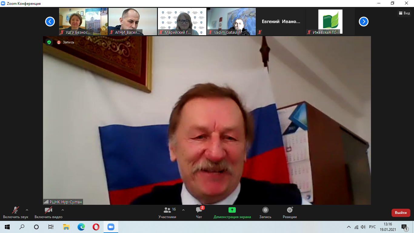 19 января 2021 года состоялась презентация университетов Предуралья и Верхне-Волжского региона. Организаторами мероприятия выступили Представительство Россотрудничества в Республике Казахстан (г.Нур-Султан), Новосибирский государственный университет, Межвузовский центр международного образования «NICE» (г.Новосибирск), при участии Представительства Россотрудничества в Киргизии (г.Бишкек) и Представительства Россотрудничества в Таджикистане (г.Душанбе).