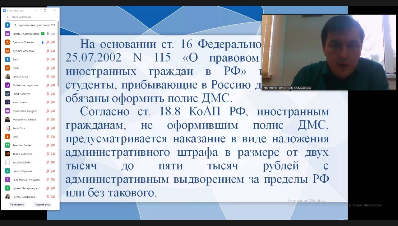 Прошло онлайн-собрание с иностранными студентами БГПУ им.М.Акмуллы
