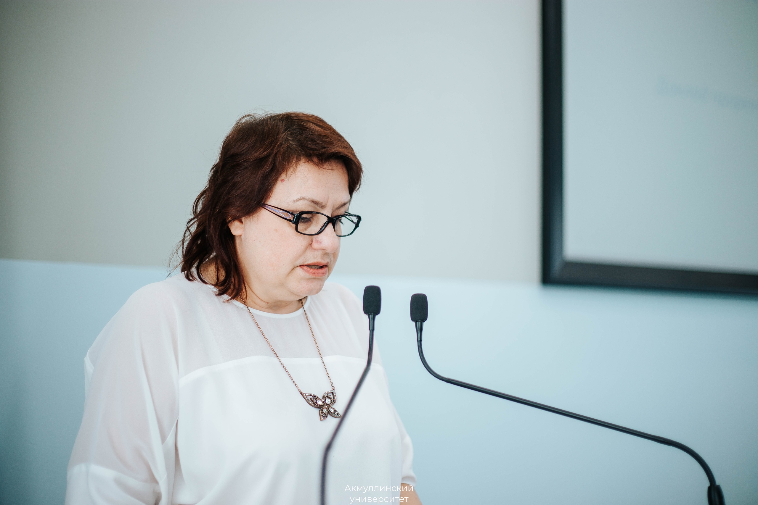 Проректор по научной деятельности Наталья Викторовна Суханова представила отчет о результатах научной деятельности Акмуллинского университета в 2020 году. Одним из важнейших событий года в этой области стало вхождение Башгоспедуниверситета в Евразийский научно-образовательный центр мирового уровня с проектами по альгологии и образовательному кванториуму. В качестве позитивного опыта были отмечены создание «Зеркальной» лаборатории «Наноэлектроника перспективных материалов» с НИУ ВШЭ и Научно-образовательного центра современных математических исследований.