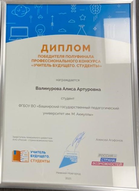 Студентка БГПУ им.Акмуллы Алиса Валинурова - финалист конкурса «Учитель будущего. Студенты»