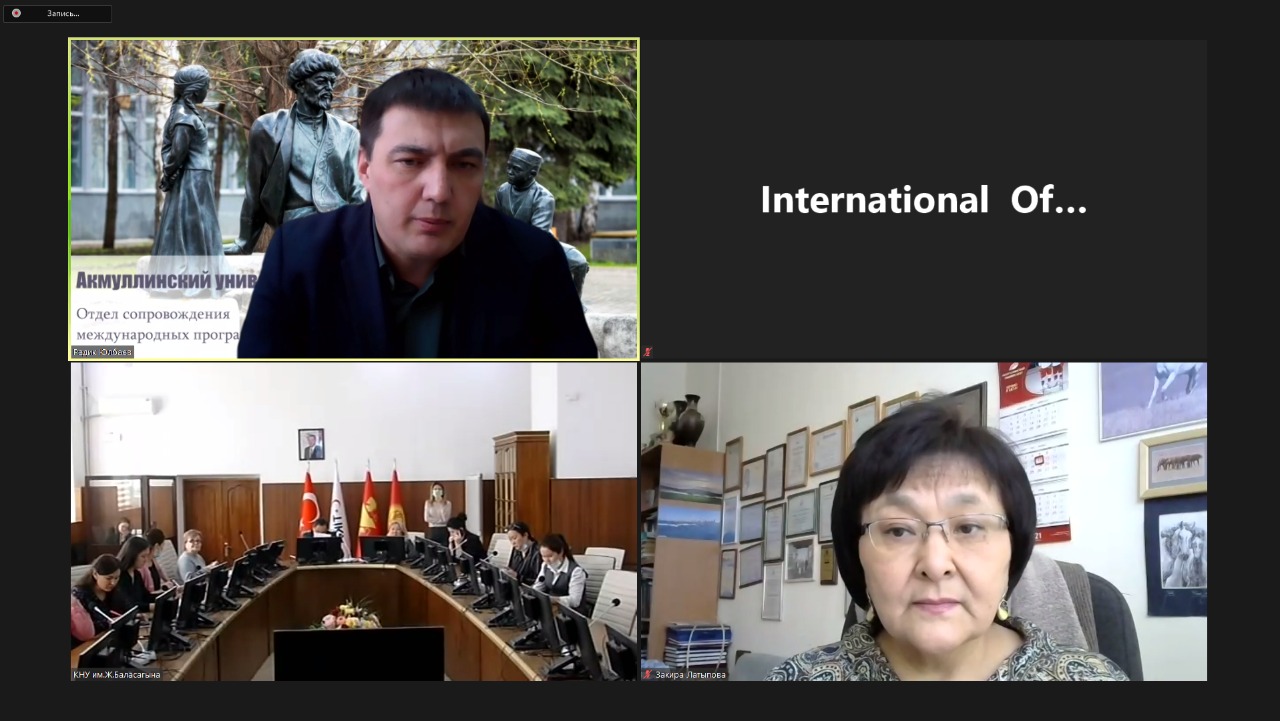 12 марта состоялась рабочая онлайн-встреча сотрудников Акмуллинского университета с представителями и студентами Кыргызского национального университета им. Ж. Баласагына .