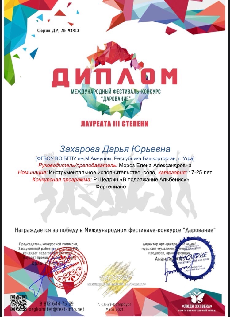 Студенты кафедры музыкального и хореографического образования - лауреаты Международного фестиваля-конкурса искусств "Дарование"