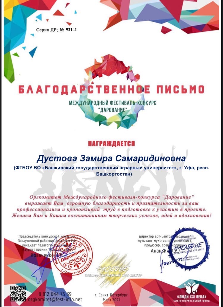 Студенты кафедры музыкального и хореографического образования стали лауреатами Международного фестиваля-конкурса искусств "Дарование".