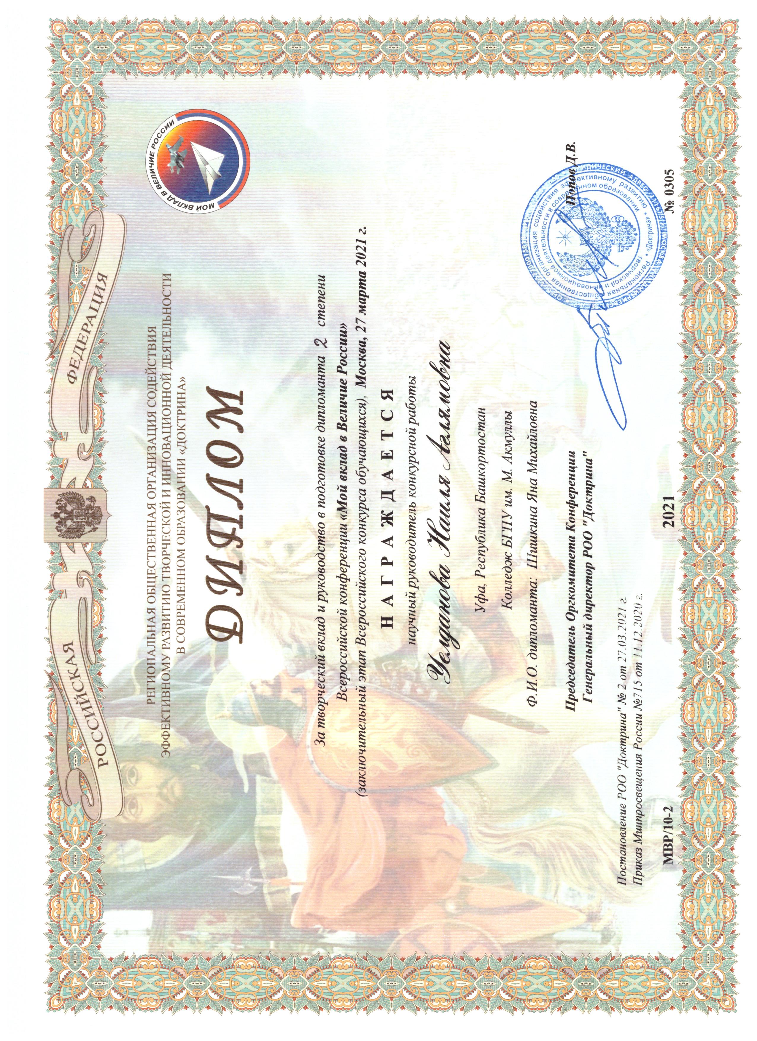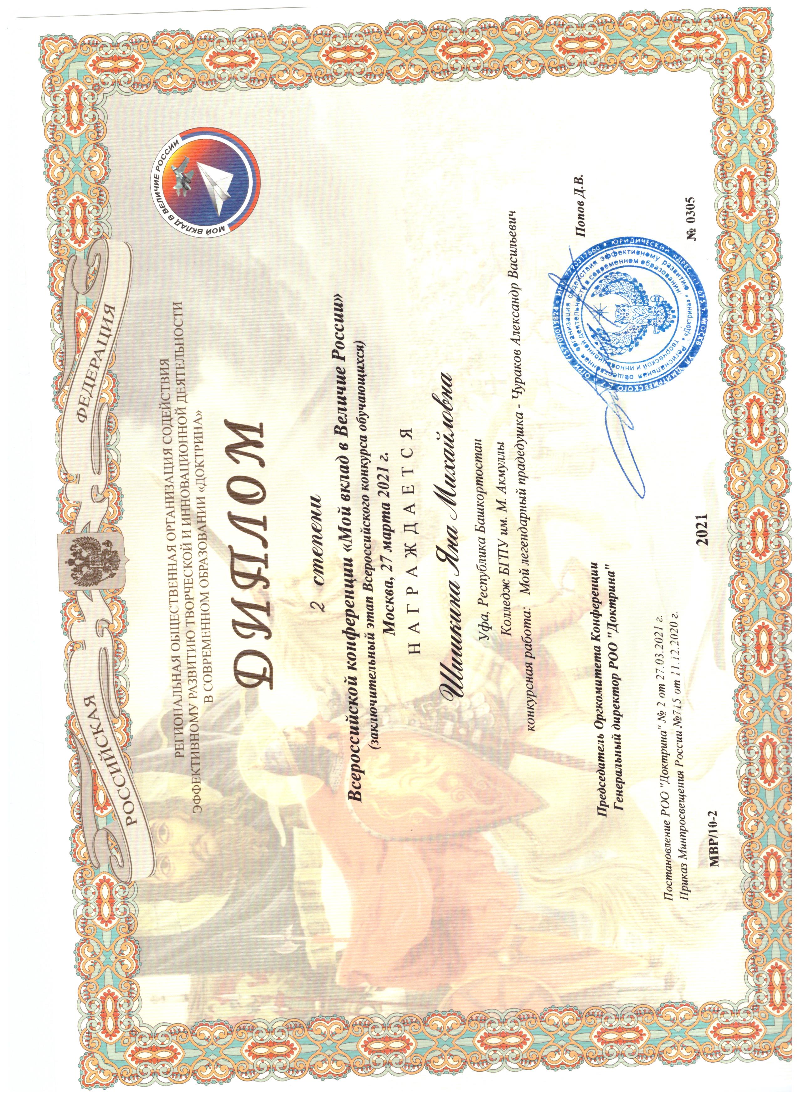 Студентка Колледжа БГПУ им. М.Акмуллы Я.Шишкина заняла второе место на Всероссийском конкурсе "Мой вклад в величие России"