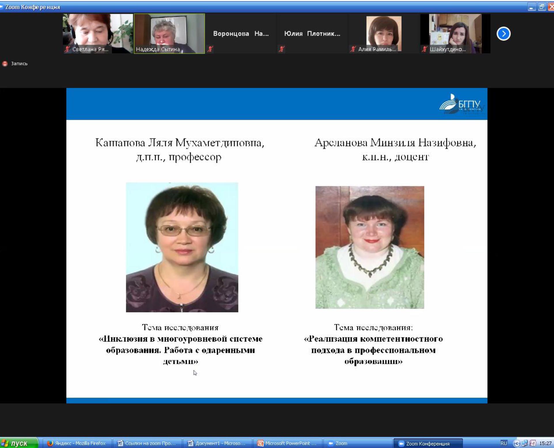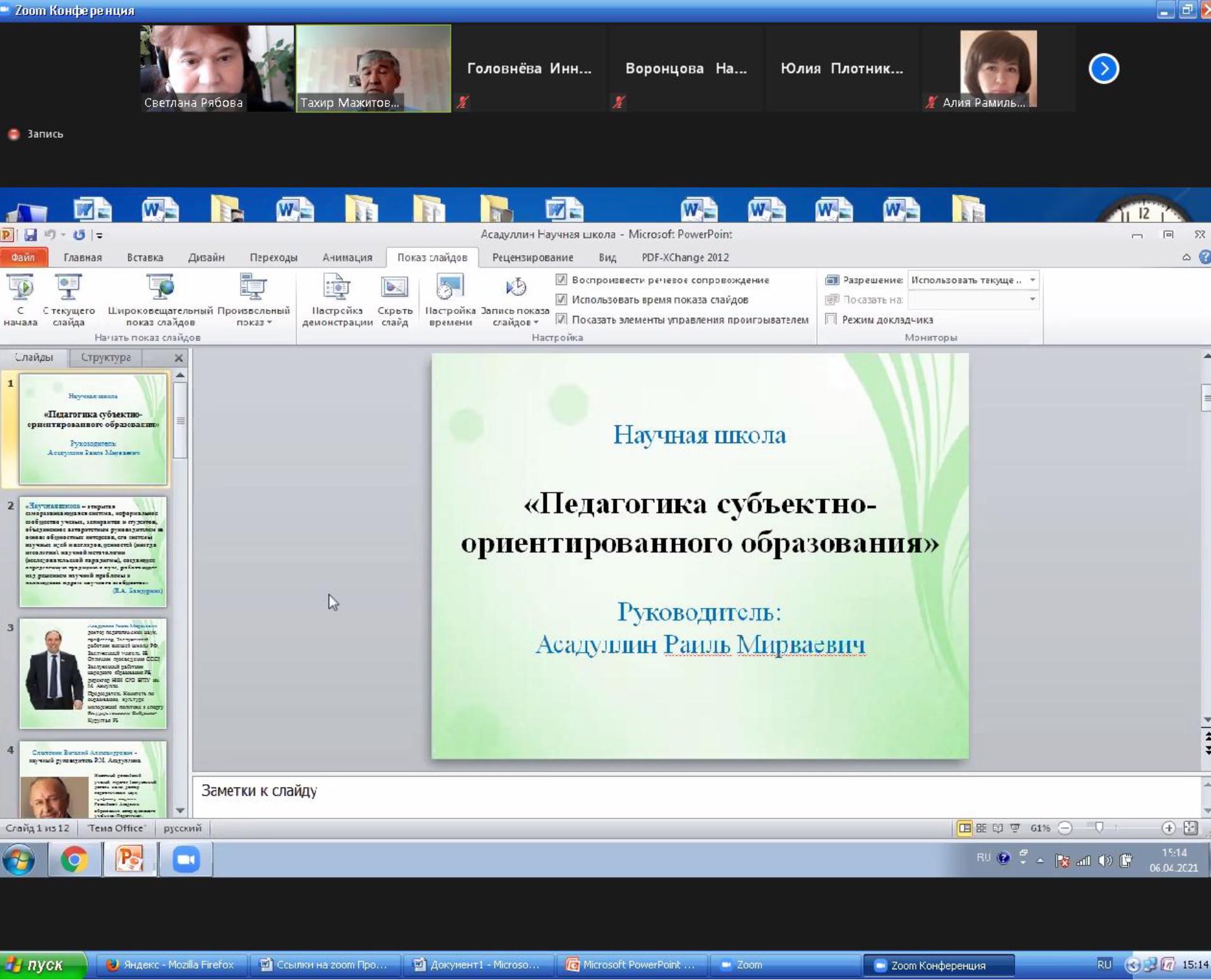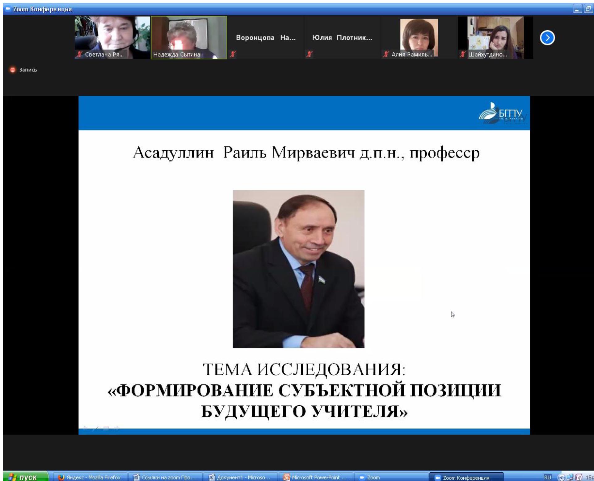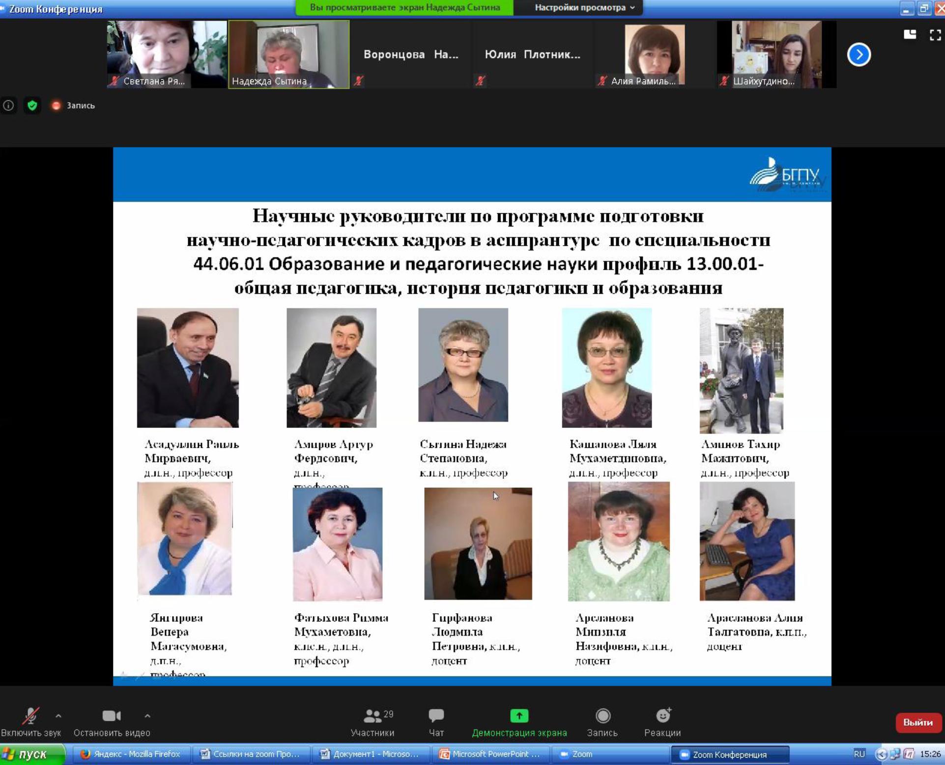 В онлайн формате прошла первая презентация образовательных программ по направлению подготовки кадров высшей квалификации 44.06.01 Образование и педагогические науки.  В мероприятии  приняли участие более 30 магистрантов, в том числе из зарубежных стран. Заведующие профильными кафедрами и ведущие профессора представили основные направления научной работы в рамках образовательных программ, которые помогут будущим аспирантам выбрать тему для исследования. Сытина Надежда Степановна представила  актуальные  научные разработки кафедры педагогики и психологии. Среди них инклюзивное образование, музыкальная педагогика, работа с одаренными детьми и др.  Вахидова Люция Вансеттовна выступила с характеристикой научных исследований в области профессиональной педагогики, которые разрабатываются на кафедре профессионального и социального образования. Профессор Аминов Тахир Мажитович  рассказал о научной школе «Педагогика субъектно-ориентированного образования», которую возглавляет д-р пед. наук, профессор, директор научно-исследовательского Института стратегии развития образования  Асадуллин Раиль Мирваевич.