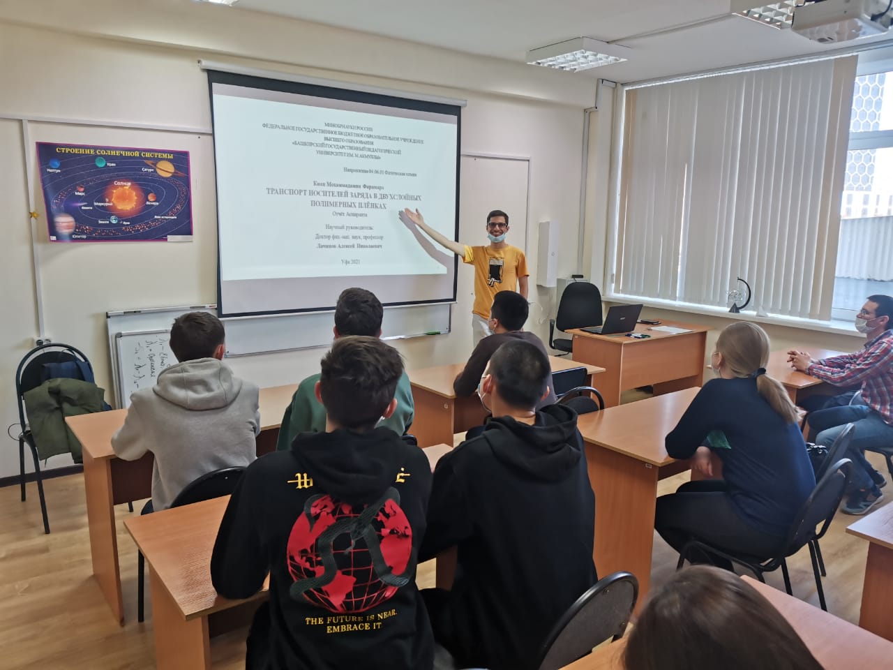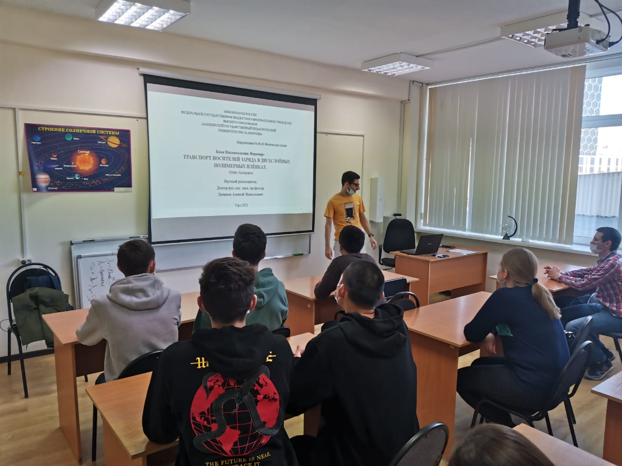 20 апреля 2021 года в БГПУ им. М. Акмуллы началась ежегодная публичная апробация результатов исследований аспирантов выпускного курса.  В Институте физики, математики, цифровых и нанотехнологий перед экспертами выступил выпускник кафедры физики и нанотехнологии Киан Мохаммадамин, который представил свою диссертацию на тему «Влияние границ раздела в полимерных пленках на их электрофизические и оптические свойства» (Научный руководитель – Лачинов Алексей Николаевич, д-р физ.-мат. наук, профессор).