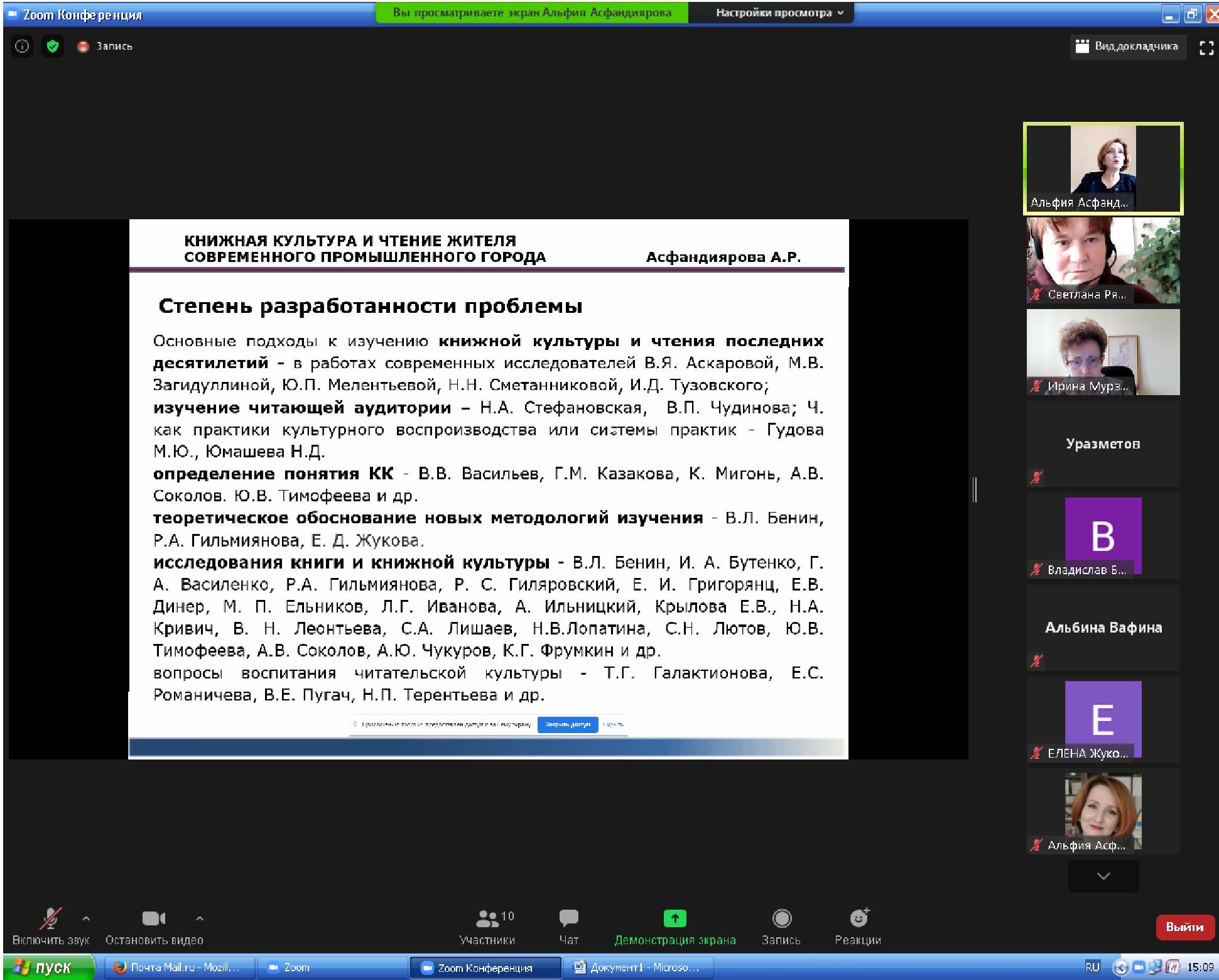 В апробации результатов исследования аспирантов приняли участие 23 эксперта, среди них 13 докторов наук, профессоров и главных научных сотрудников нашего университета, 4 эксперта из других вузов и научных организаций РБ и РФ (Санкт-Петербург, Челябинск и др.). Эксперты задали свои вопросы, отметили недостатки в представленных исследованиях и дали рекомендации по дальнейшему совершенствованию научной темы.