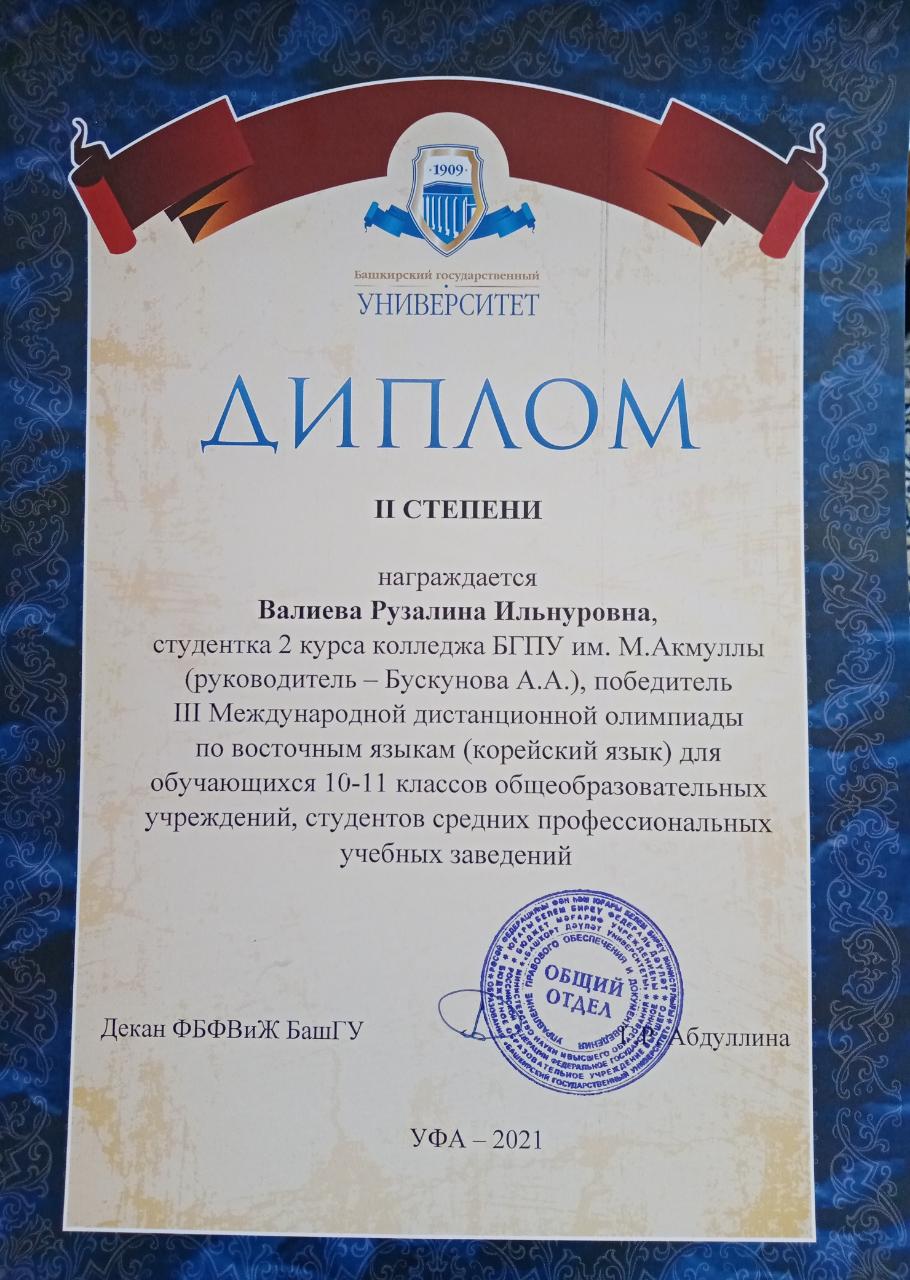 Студенты Колледжа БГПУ им.М.Акмуллы – призеры Международных и Всероссийских конкурсов и олимпиад