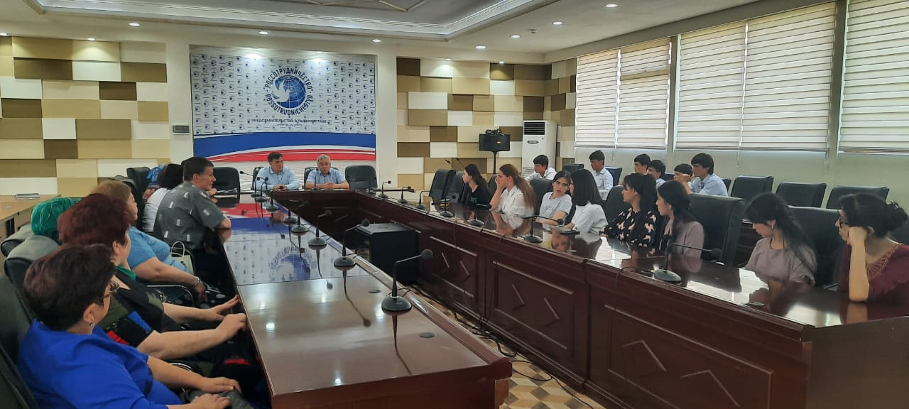 В дружеском и продуктивном ключе прошла встреча с будущими выпускниками ТГПУ им.С.Айни, в рамках которой состоялись лекции «Управление инновационным развитием образовательной организацией» и «Основные направления деятельности Научно-исследовательского центра духовного развития по обеспечению профилактики распространения экстремизма и терроризма». Также было проведено предварительное тестирование будущих абитуриентов из Таджикистана.
