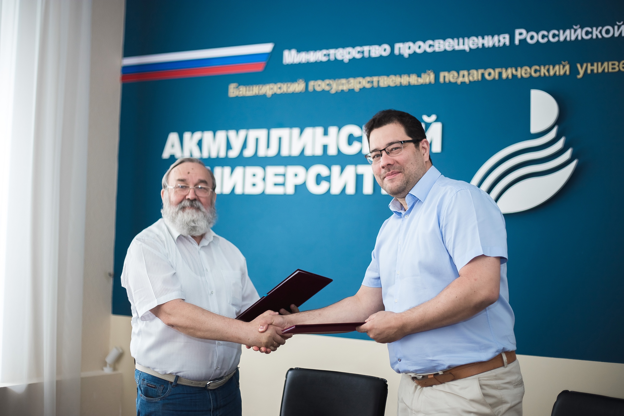 21 июня 2021 года в Башкирском государственном педагогическом университете им. М. Акмуллы состоялось подписание соглашения о сотрудничестве с региональным филиалом общероссийской просветительской организации «Российское общество «Знание». Документ подписали ректор Акмуллинского университета Салават Сагитов и директор филиала Сергей Ширинкин.
