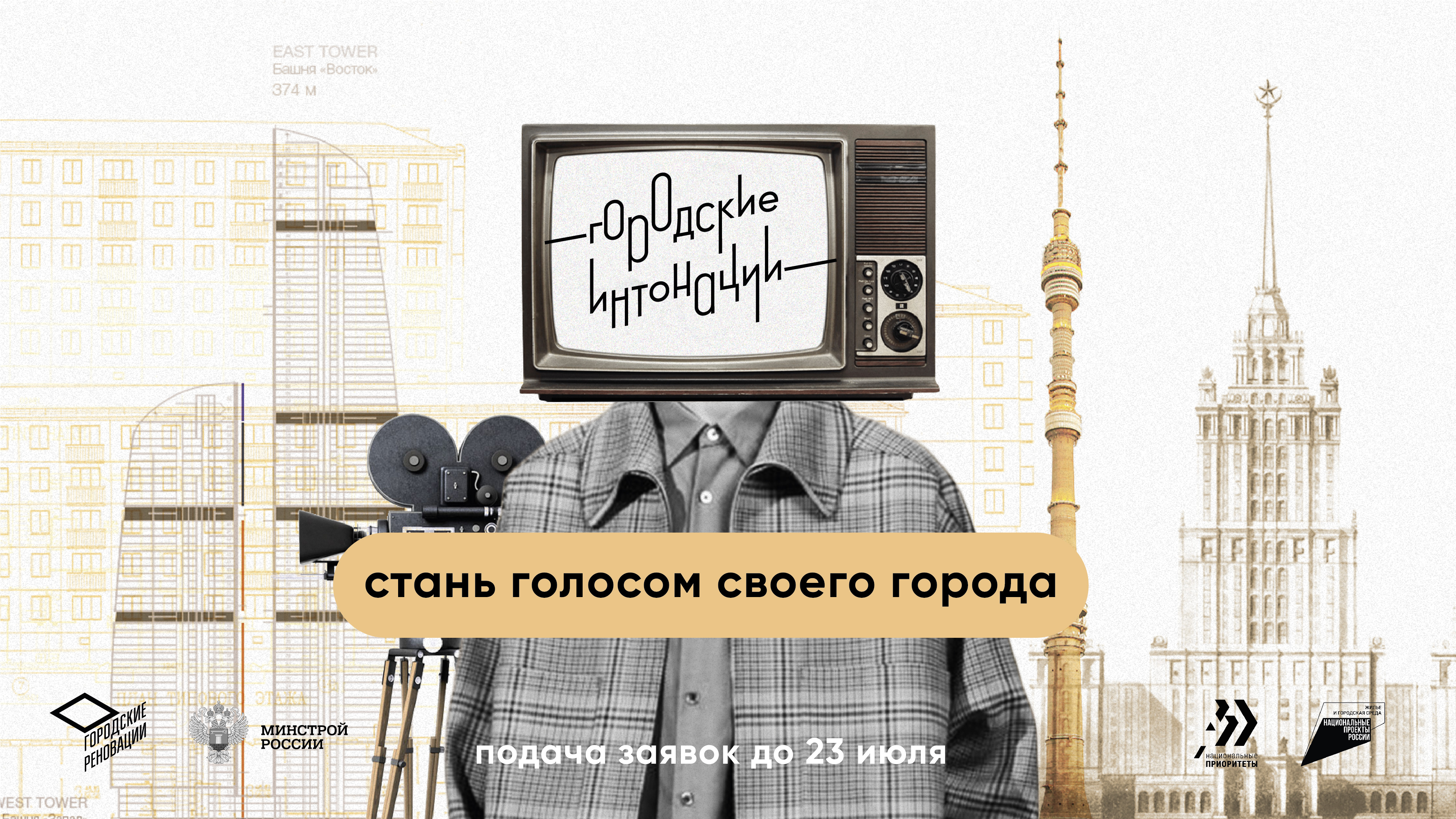 С 16 июня 2021 года начался прием заявок на первый Всероссийский молодежный конкурс медиапроектов в сфере урбанистки «Городские интонации». В рамках конкурса студентам и выпускникам вузов и ссузов из всех регионов России в возрасте от 18 до 35 лет предлагается подготовить медиапроекты, способствующие развитию и популяризации темы городской среды. Организаторами выступают Минстрой России и Общероссийская организация «Городские реновации», информационный партнер конкурса - АНО «Национальные приоритеты».