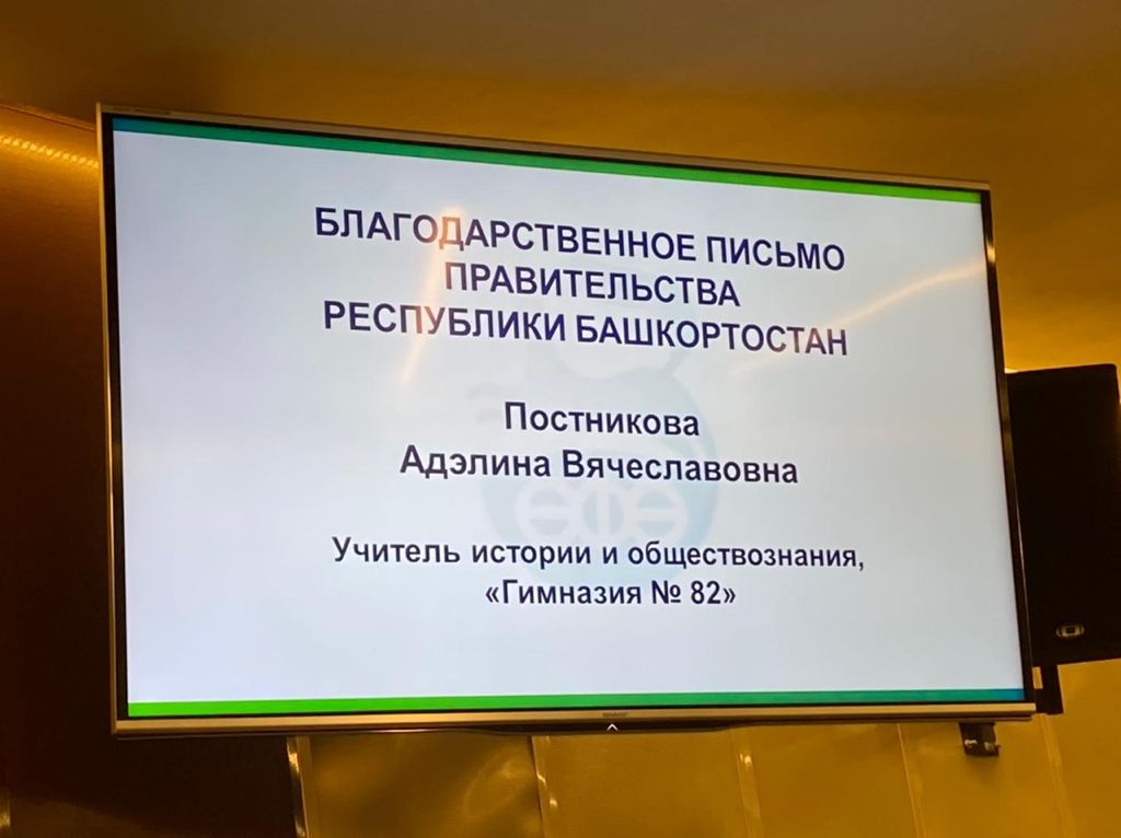 В рамках  совещания  благодарственные  письма  и награды были вручены лучшим учителям и работникам образования г.Уфы. Благодарственным письмом Правительства Республики Башкортостан была награждена студентка  2 курса магистратуры Института исторического, правового и социально-гуманитарного образования БГПУ им.М.Акмуллы по направлению «Правовой менеджмент в сфере образования» Постникова Адэлина Вячеславовна за активную общественную деятельность, патриотическое и духовное воспитание подрастающего поколения.