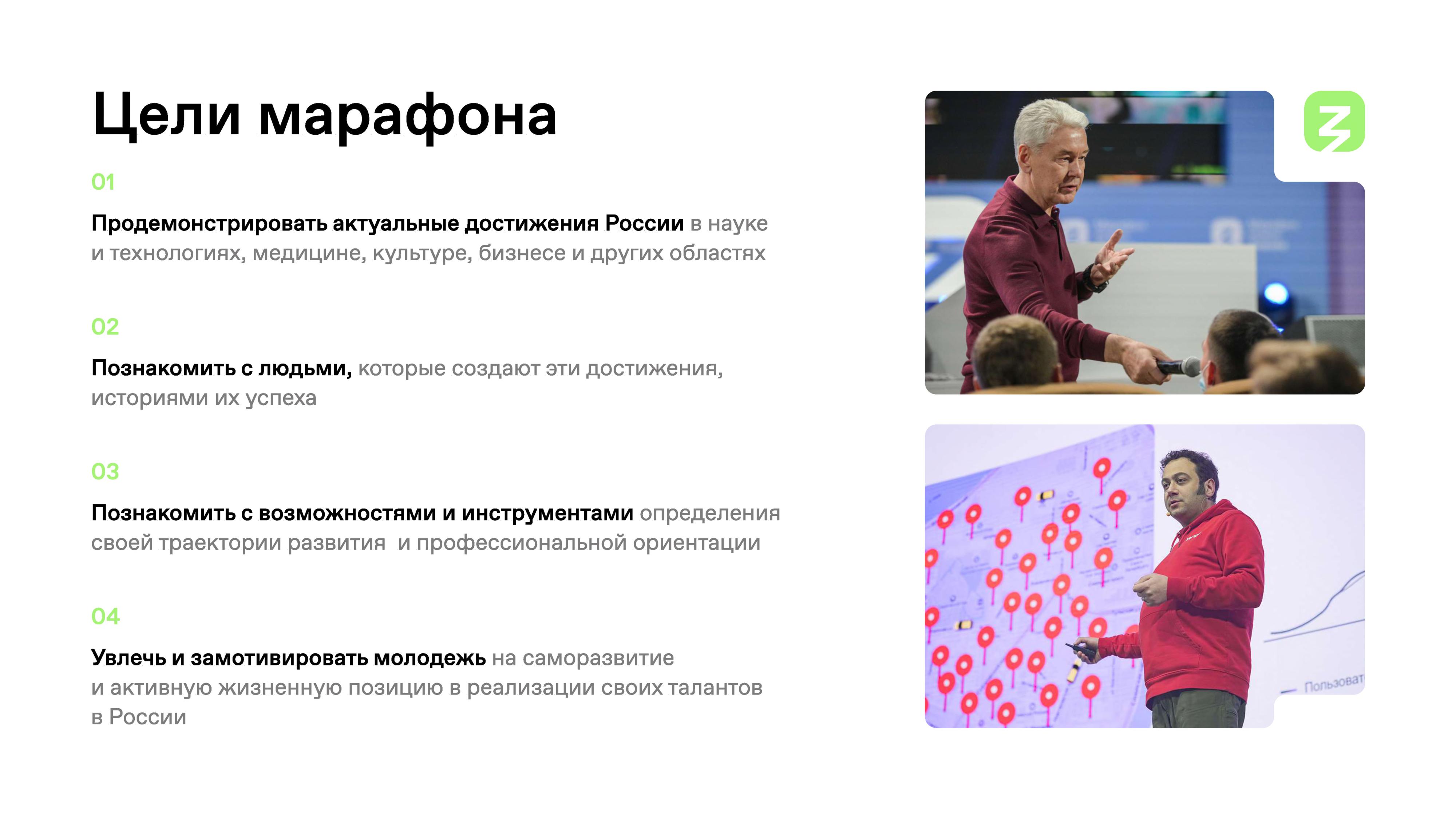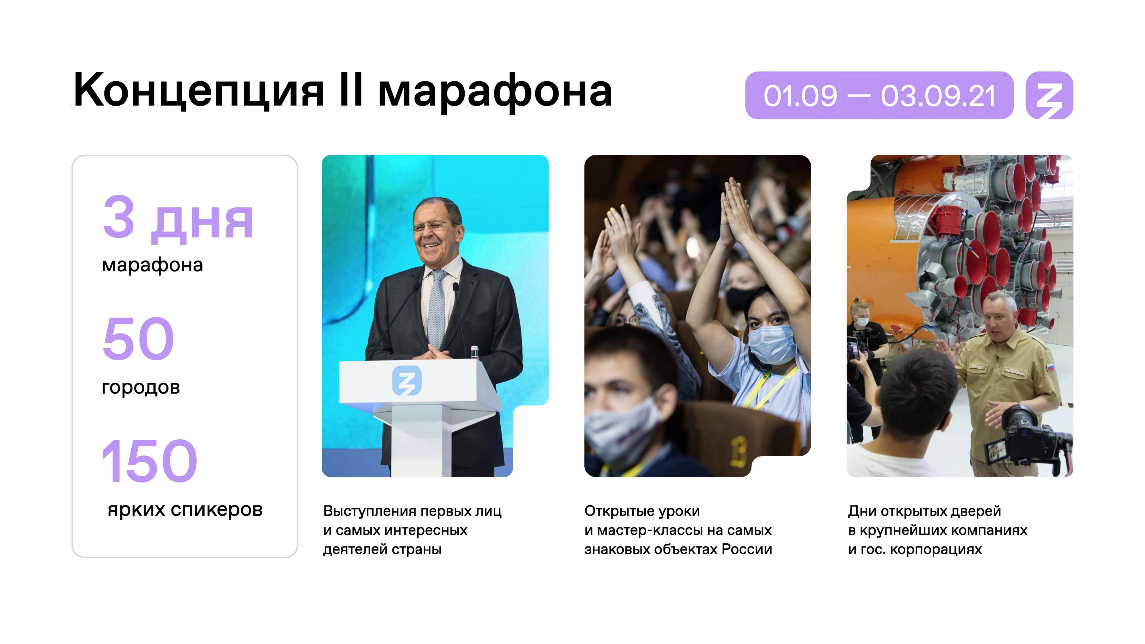 В рамках марафона пройдут открытые уроки с участием первых лиц России. Также состоится тематический эфир «Наука и технологии», приуроченный к Всероссийскому открытому уроку «Современная российская наука», в программе которого выступления выдающихся ученых, организаторов и популяризаторов науки.