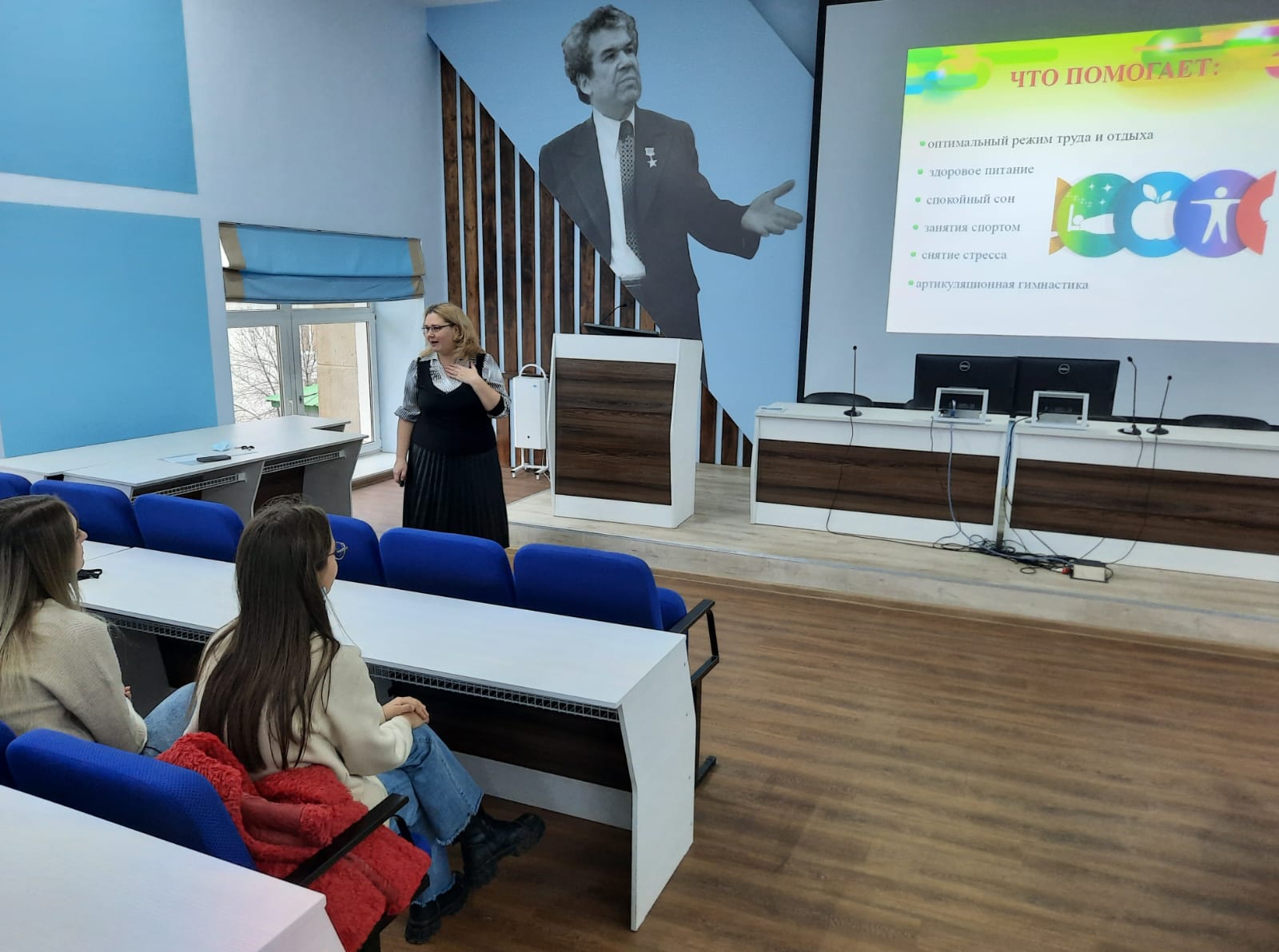 При проведении занятия были приняты всесторонние меры для обеспечения санитарно-эпидемиологической безопасности. На входе в учебный корпус проводилась термометрия, у всех участников занятия были надеты защитные маски и они занимались в аудиториях группами не более 25 человек с соблюдением социальной дистанции.
