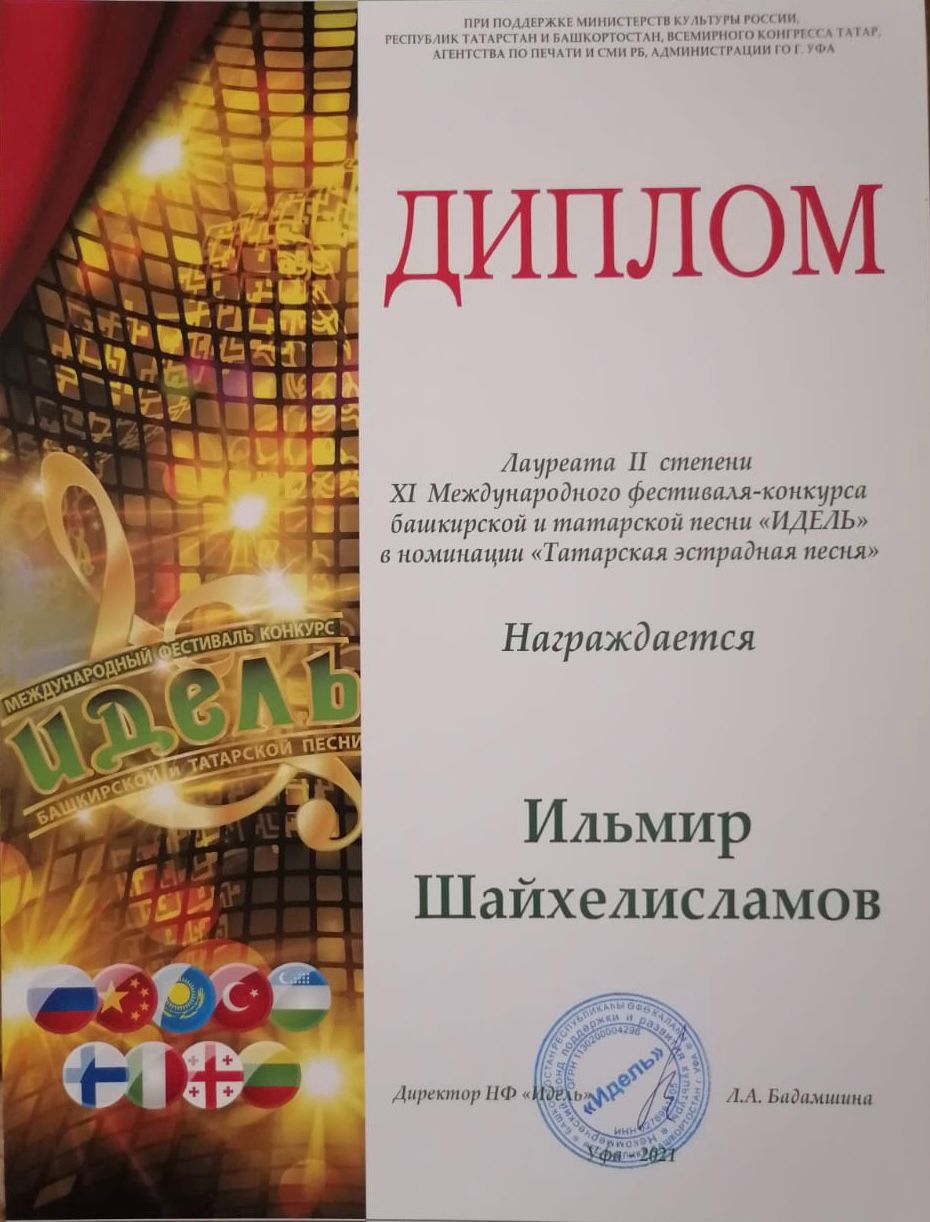 В конце ноября в ГКЗ «Башкортостан» подвели итоги очередного ежегодного Международного фестиваля-конкурса башкирской и татарской песни «Идель», в котором принял участие студент 4 курса кафедры музыкального и хореографического образования Ильмир Шайхелисламов. По итогам конкурса он был удостоен звания Лауреата II степени в номинации "Татарская эстрадная песня".