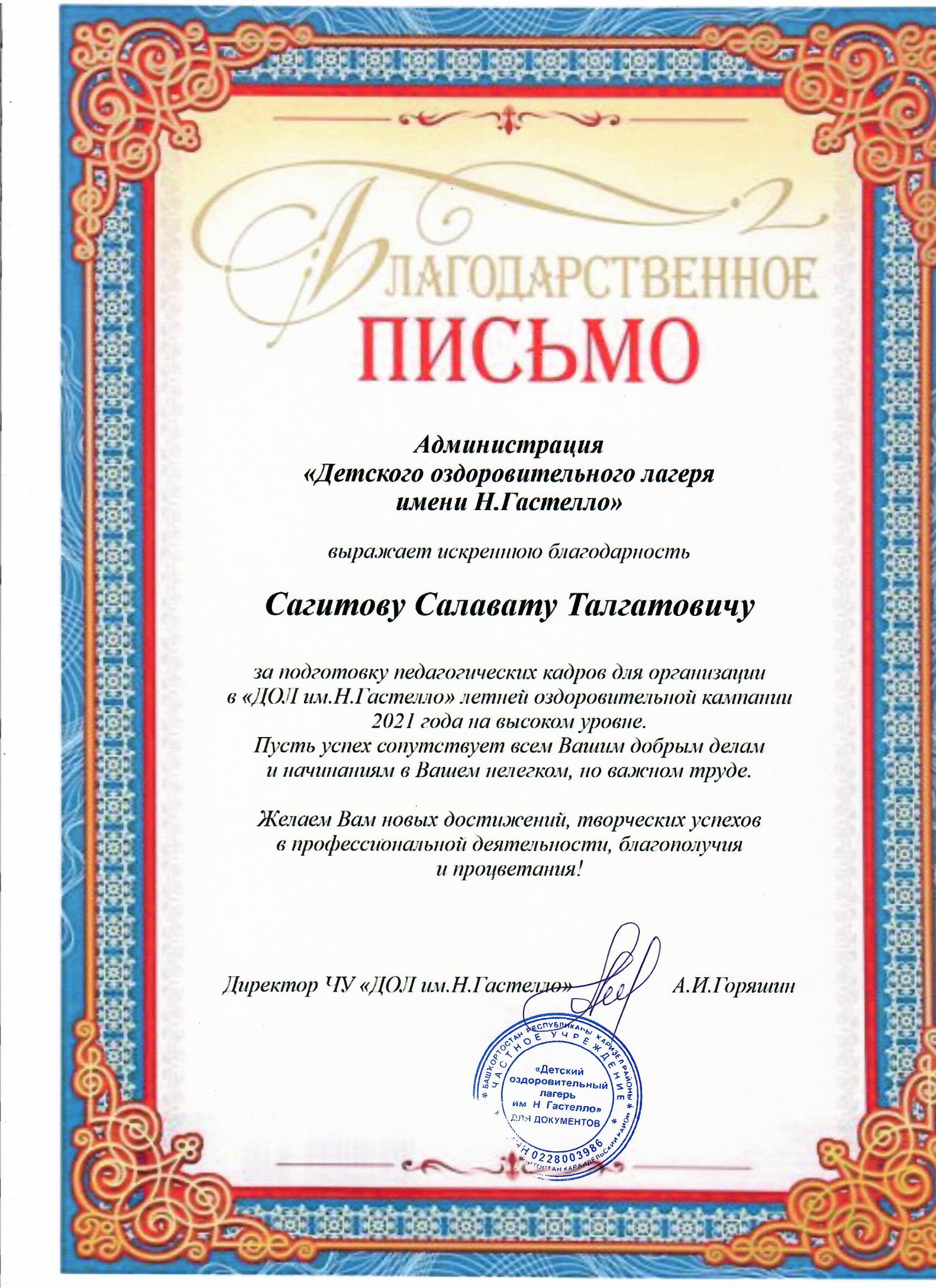 Акмуллинский университет получает благодарности за работу студентов-вожатых