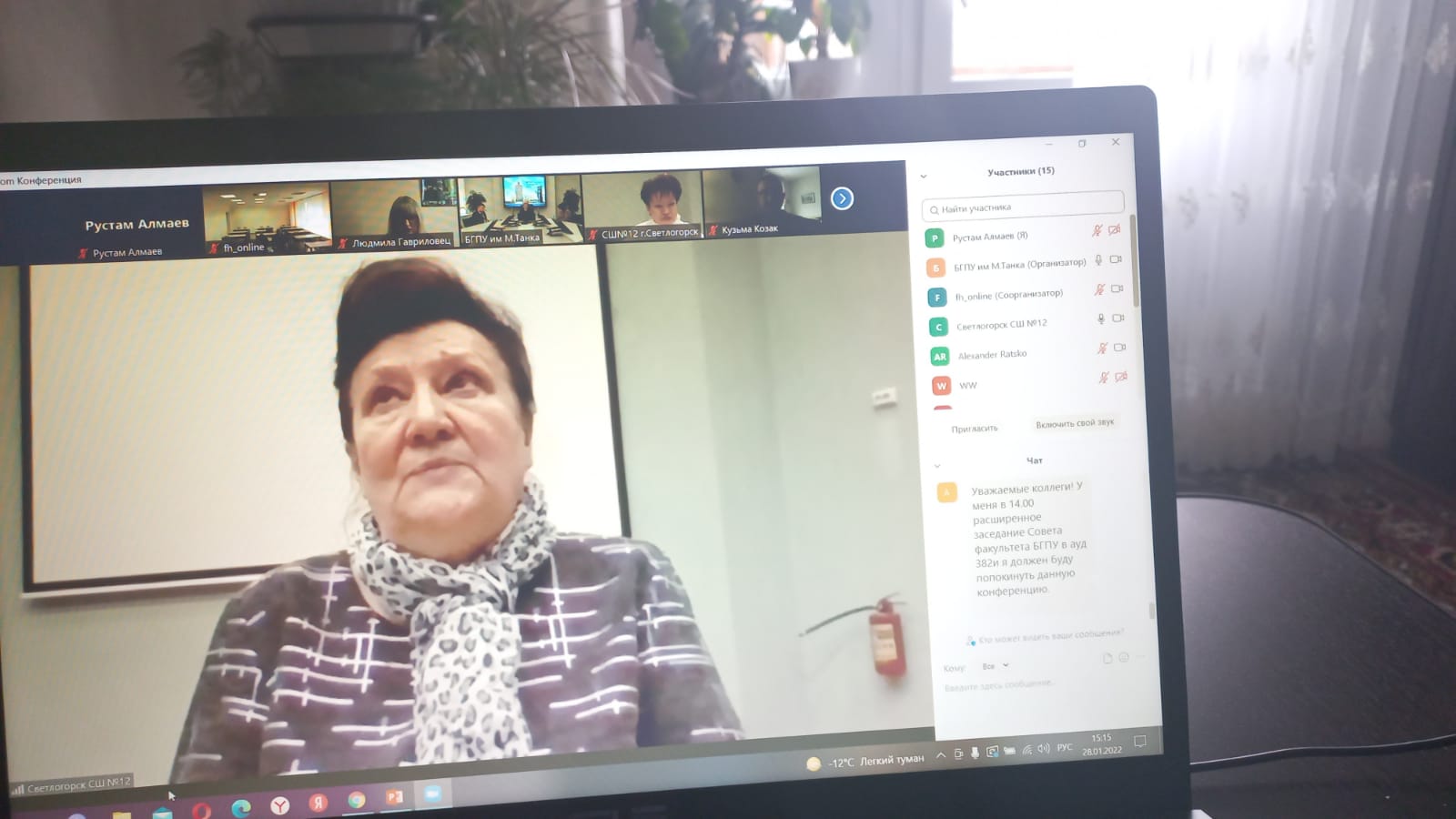 На данном мероприятии своим опытом патриотического воспитания молодежи поделились представители различных учреждений образования: факультета истории, коммуникации и туризма Гомельского государственного университета им.Ф.Скорины, Евразийского национального университета им.Л.Гумилева (Республика Казахстан, г. Нур-Султан), общеобразовательных школ Светлогорского района Республики Беларусь.