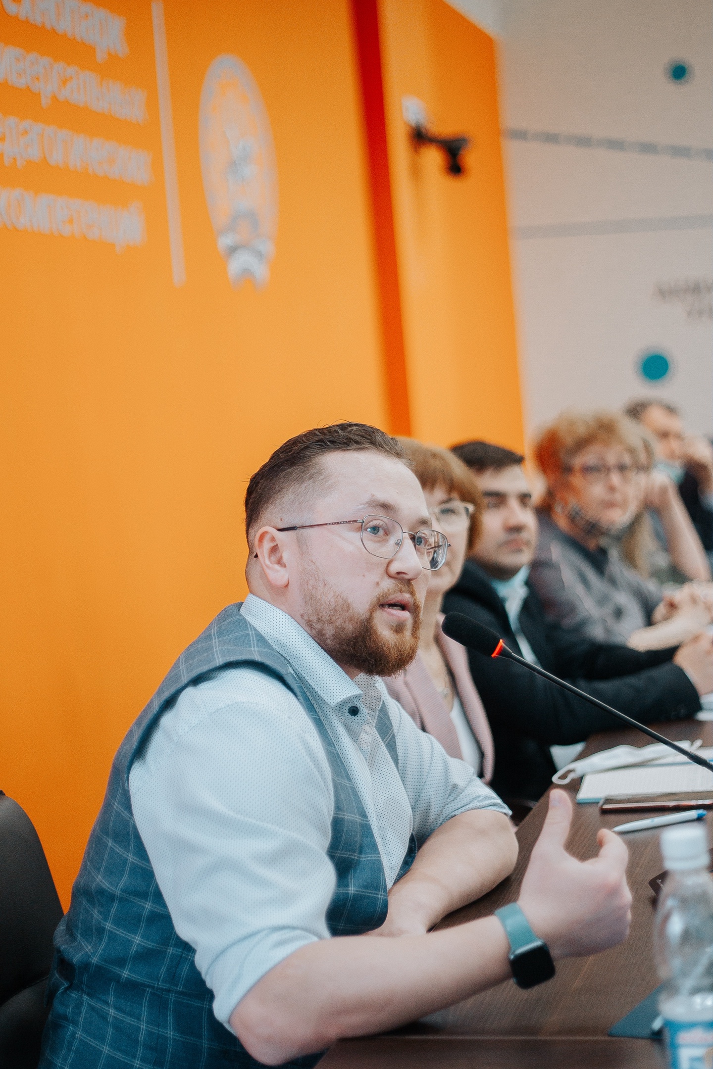 Директор педагогического технопарка Айдар Сайгафаров представил коллегам программу по созданию в технопарке единой образовательной среды, позволяющей готовить молодых педагогов, применяющих в своей работе междисциплинарные знания, а также профессионально развиваться уже работающим педагогам. Программа ориентирована на работу с 4 группами потенциальных пользователей Технопарка – студентами и преподавателями вуза, а также школьниками и учителями.