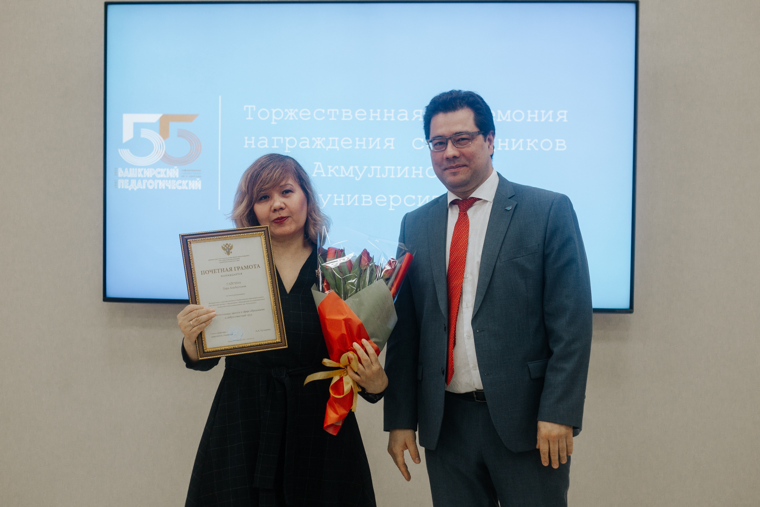 29 марта 2022 года в БГПУ им. М. Акмуллы состоялась торжественная церемония чествования сотрудников вуза. Лучшие из лучших получили государственные и ведомственные награды Российской Федерации и Республики Башкортостан. Награждение приурочено к празднованию 55-летия со дня основания университета.