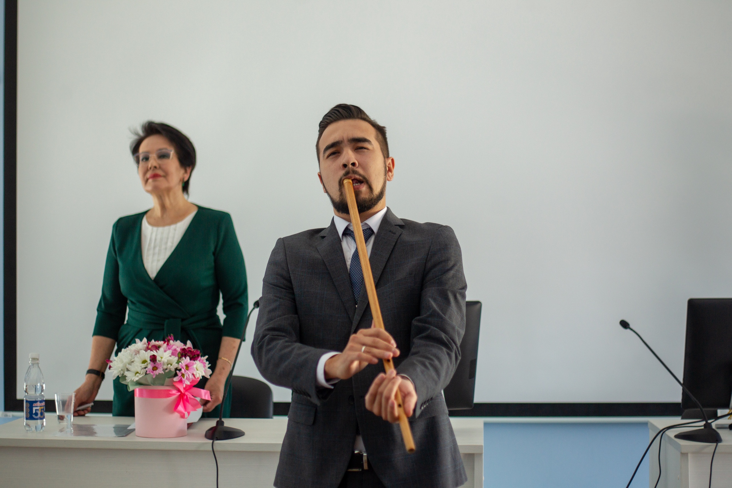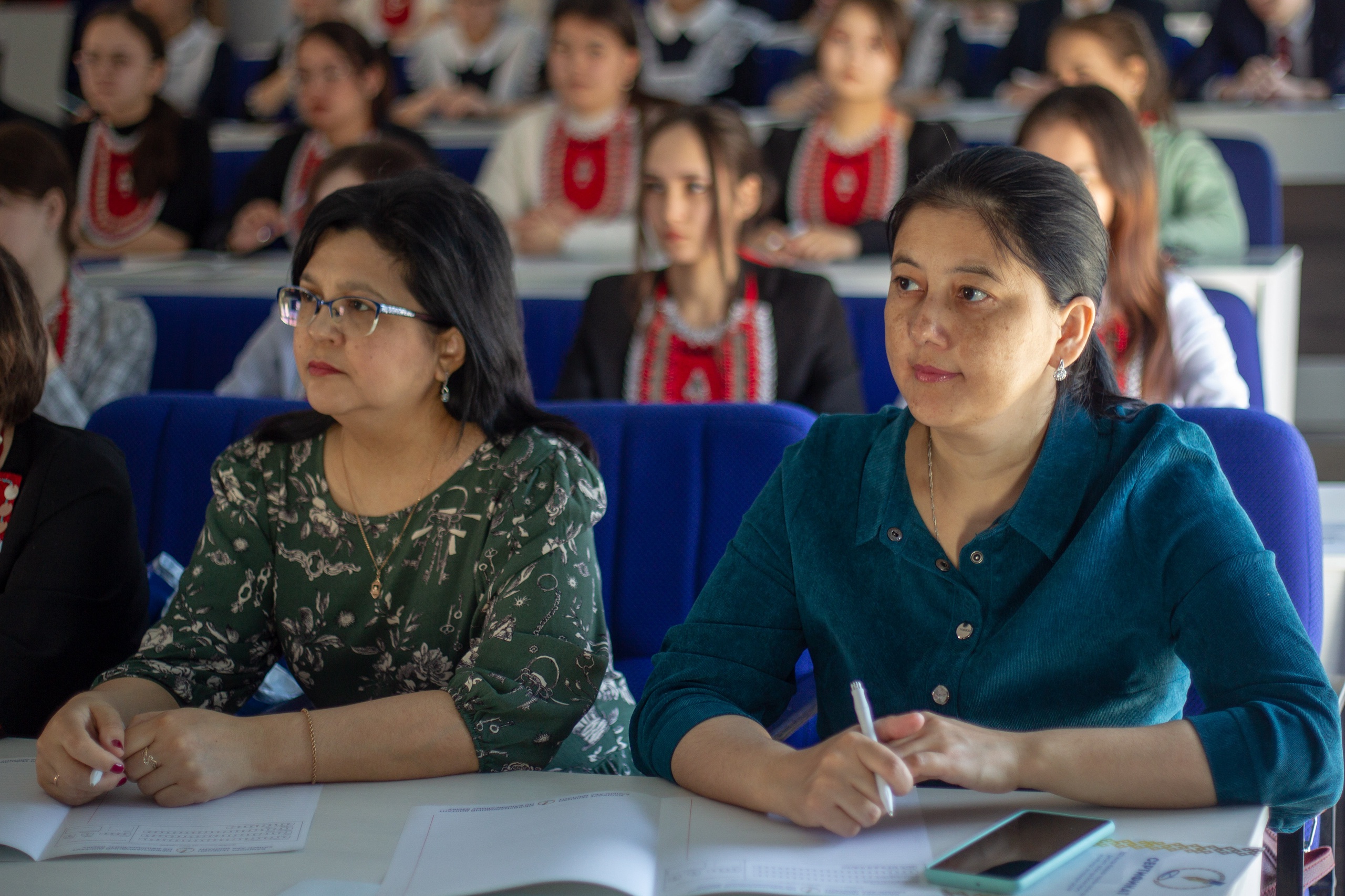 В именной аудитория Мустая Карима диктант  писали участники, которые свободно владеют башкирским языком. Для них текст читала легендарный диктор башкирского телевидения, заслуженный работник печати и массовой информации РБ, заслуженный работник культуры РФ Флюра Мурзина.