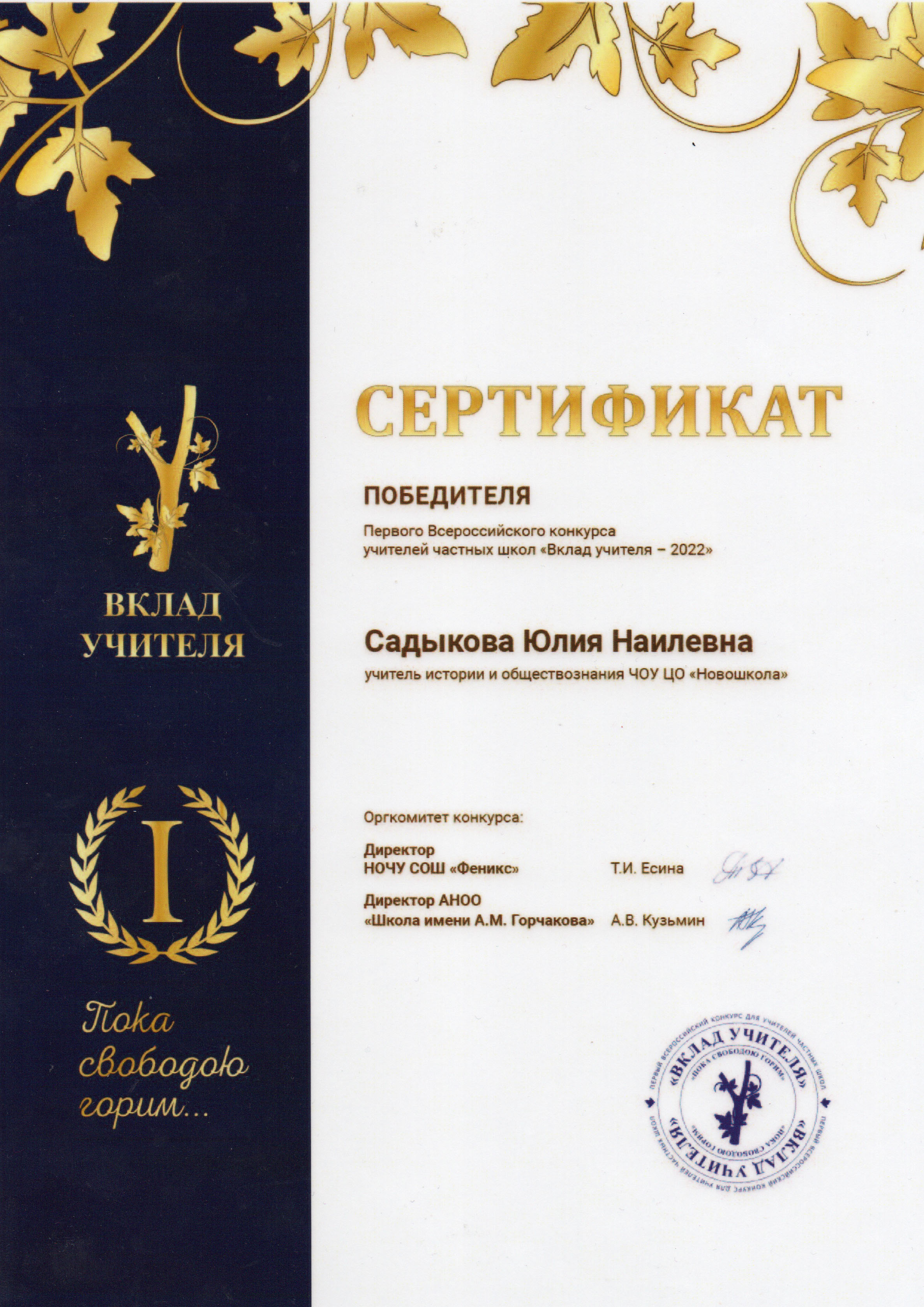 15 мая 2022 года в Москве состоялась церемония награждения финалистов II Всероссийского конкурса учителей частных школ «Вклад Учителя».