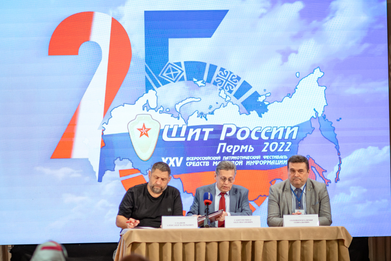 С 9 по 13 августа в Перми проходил юбилейный XXV Всероссийский патриотический фестиваль СМИ «Щит России». Члены жюри под председательством специального корреспондента ВГТРК Александра Валерьевича Сладкова рассмотрели около шестисот работ, поступивших на творческий конкурс Фестиваля в разделах «Телевидение», «Радио», «Печатные СМИ» и «Интернет» по 5 номинациям.