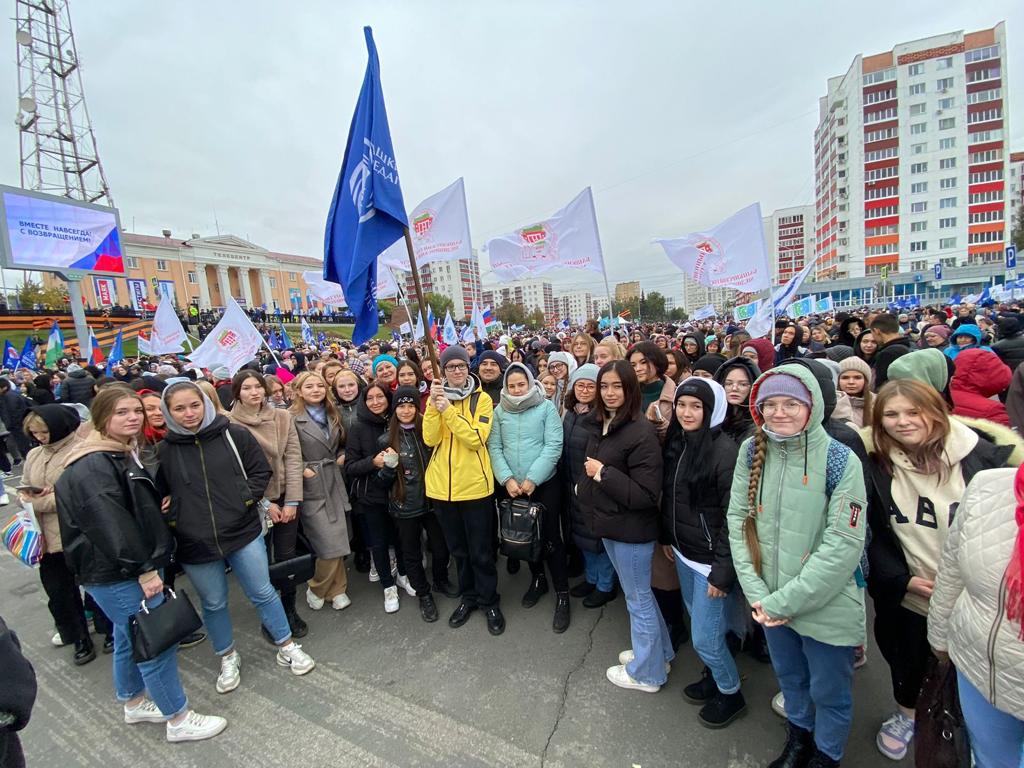 30 сентября на площади перед конгресс-холлом «Торатау» в Уфе прошел митинг-концерт в честь завершения референдума, на котором решался вопрос о вхождения ДНР, ЛНР и Запорожья в состав Российской Федерации. В нем приняли участие более 20 тысяч уфимцев. Вместе с ними историческое событие в жизни страны приветствовали студенты, преподаватели и сотрудники Акмуллинского университета.