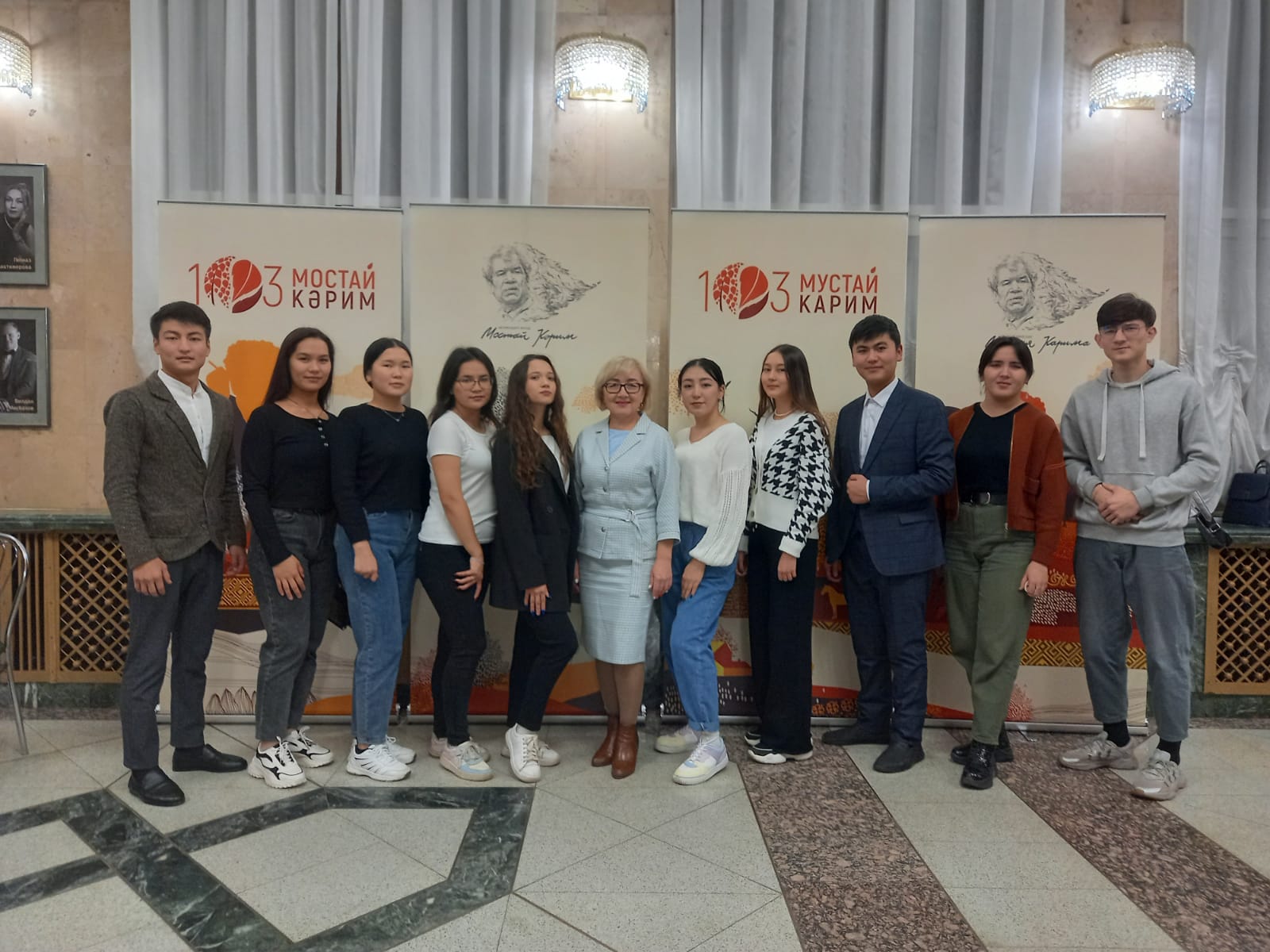 Студенты факультета башкирской филологии прочли строки известных стихотворений поэта. А вечером первокурсники ФБФ под руководством заместителя декана, доцента кафедры башкирского языка и литературы Раушании Султакаевой посетили спектакль «Мустай Карим. Близкий горизонт» Башкирского государственного театра кукол. Спектакль состоялся в Уфимском государственном татарском театре «Нур», на нем присутствовала директор Фонда имени Мустая Карима, дочь Мустафы Сафича Альфия Каримова и другие почётные гости, среди которых было много известных деятелей культуры Российской Федерации и Республики Башкортостан.