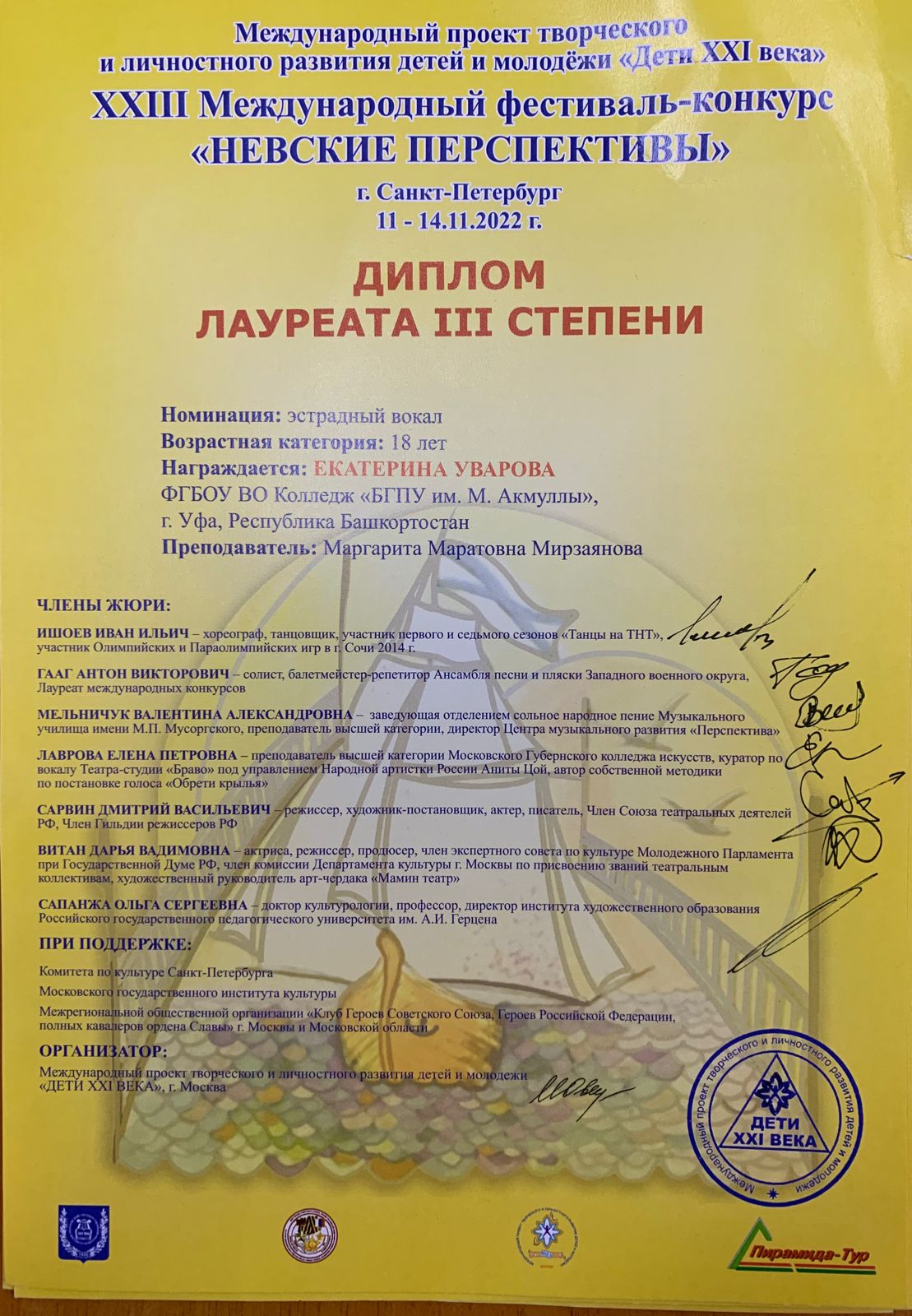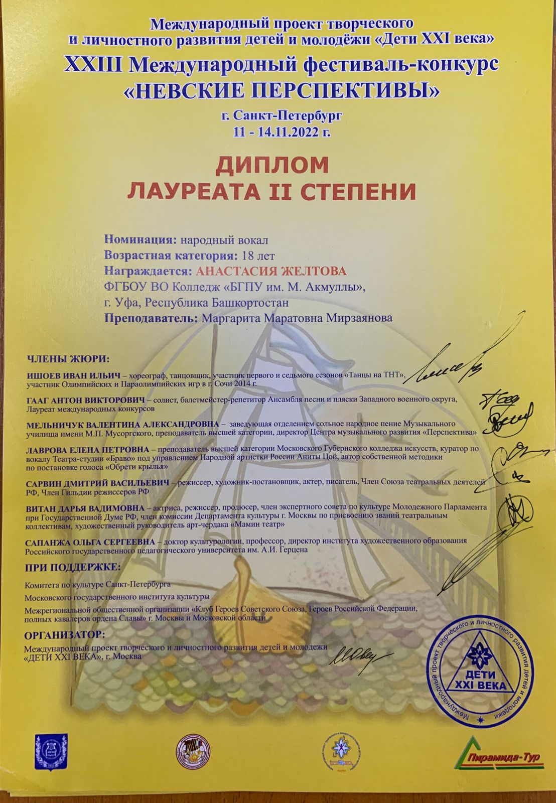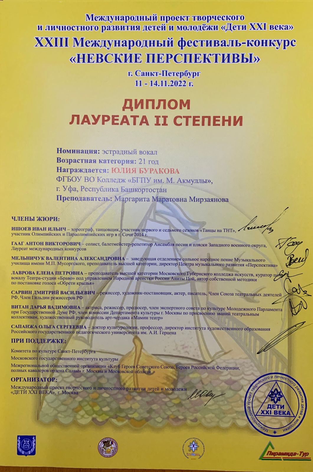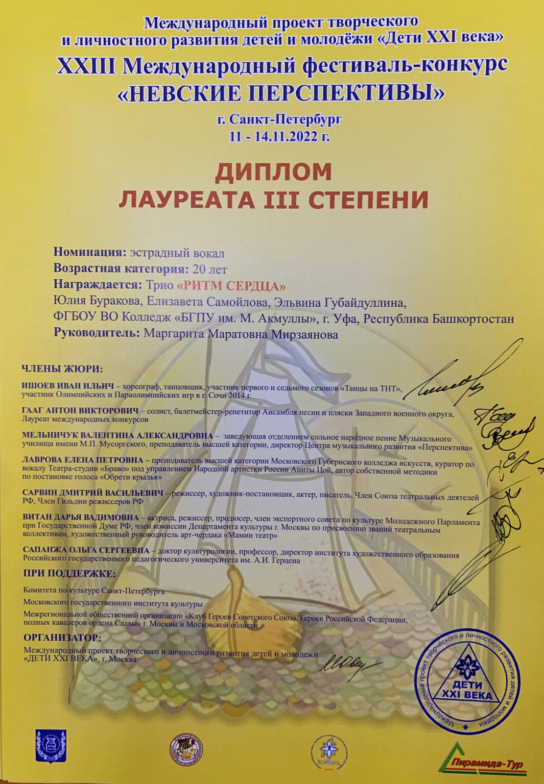 Студенты Колледжа БГПУ им. М. Акмуллы - лауреаты международного фестиваля-конкурса «Невские перспективы»