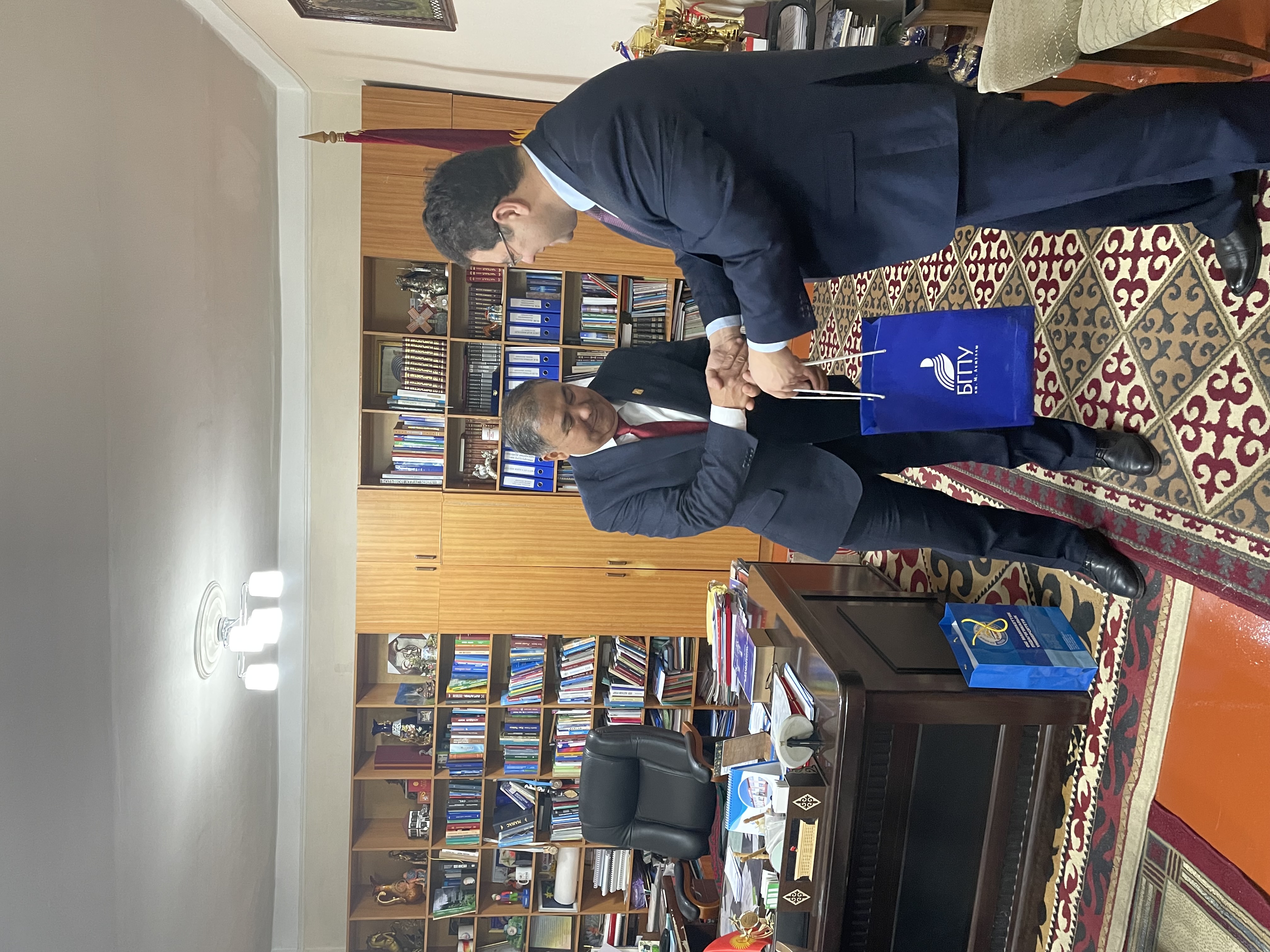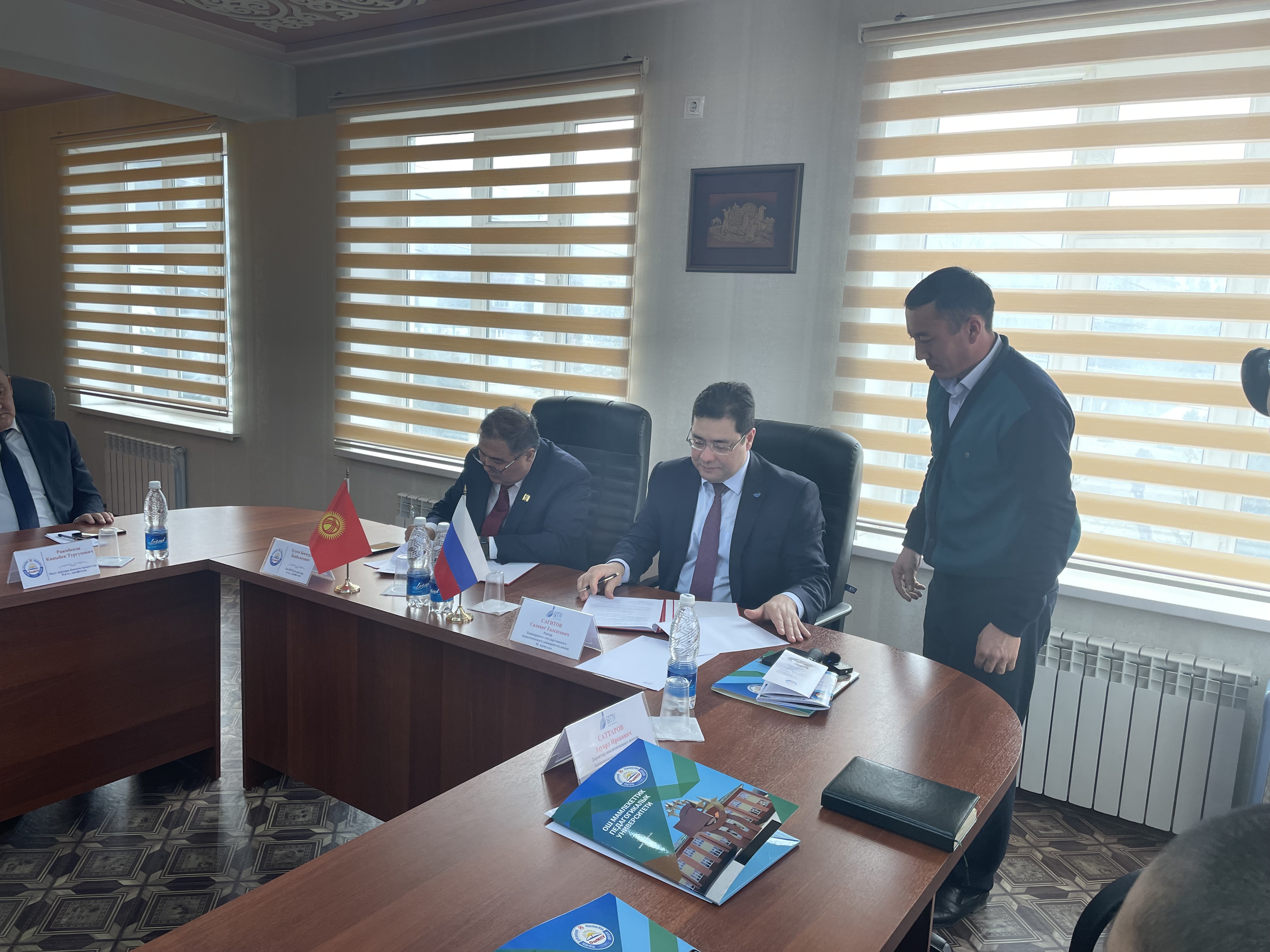 В рамках рабочего визита делегации Акмуллинского университета в г. Ош Киргизской Республики состоялись официальные встречи ректора БГПУ им. М.Акмуллы Салавата Сагитова и ректора Ошского государственного университета Кудайберди Кожобекова. Ректор Ошского государственного университета отметил важность укрепления международных связей в современных условиях и выразил уверенность в скором достижении новых этапов развития партнерства БГПУ им. М.Акмуллы и ОшГу. Стороны договорились о возможностях реализации совместных образовательных программ, проведении курсов повышения квалификации для коллег, а также проведении совместных проектов и исследований, реализации грантов.