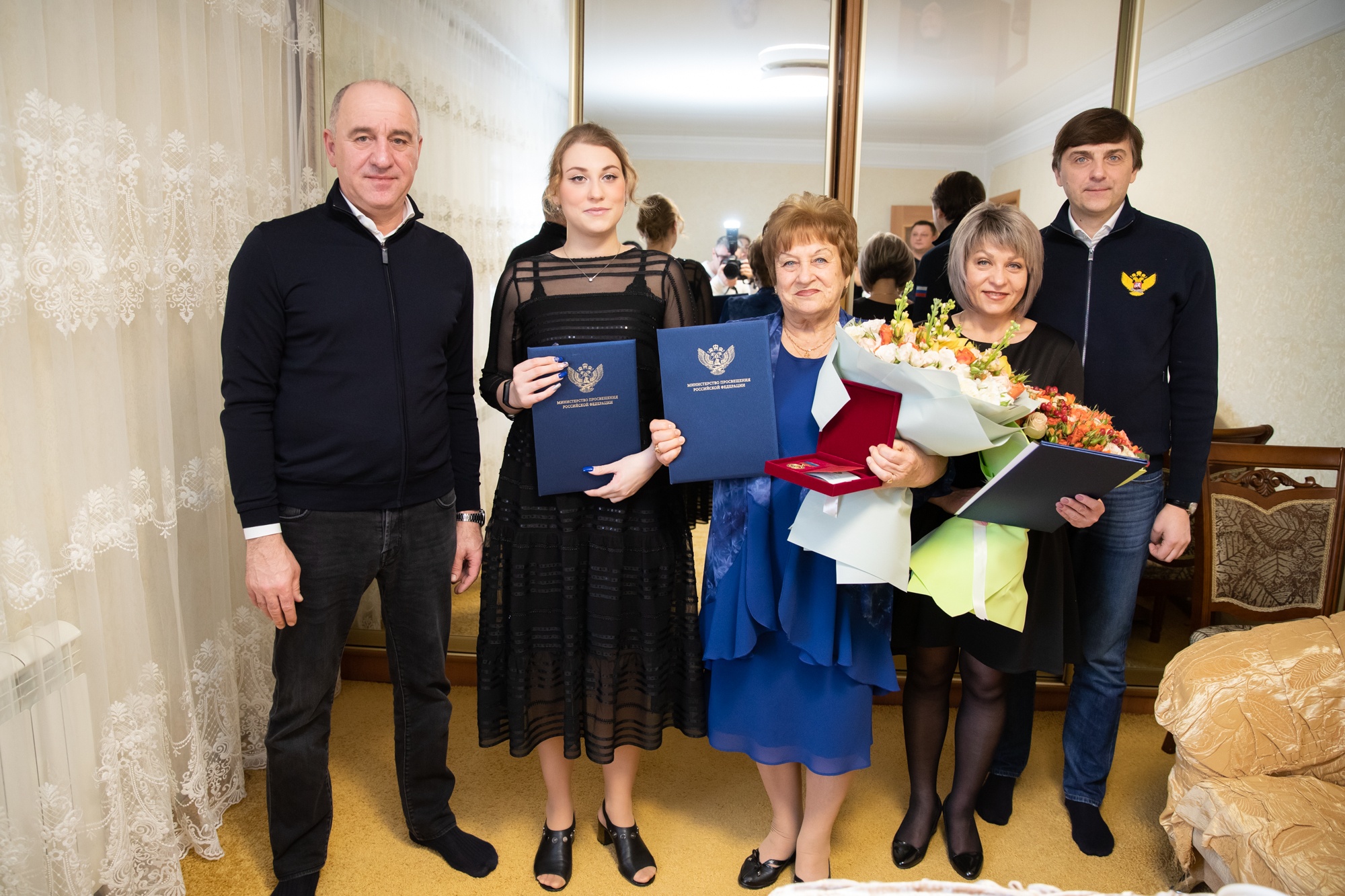 В завершение встречи Министр просвещения вручил ведомственные награды представителям педагогической династии Лисовенко-Тихоновых.