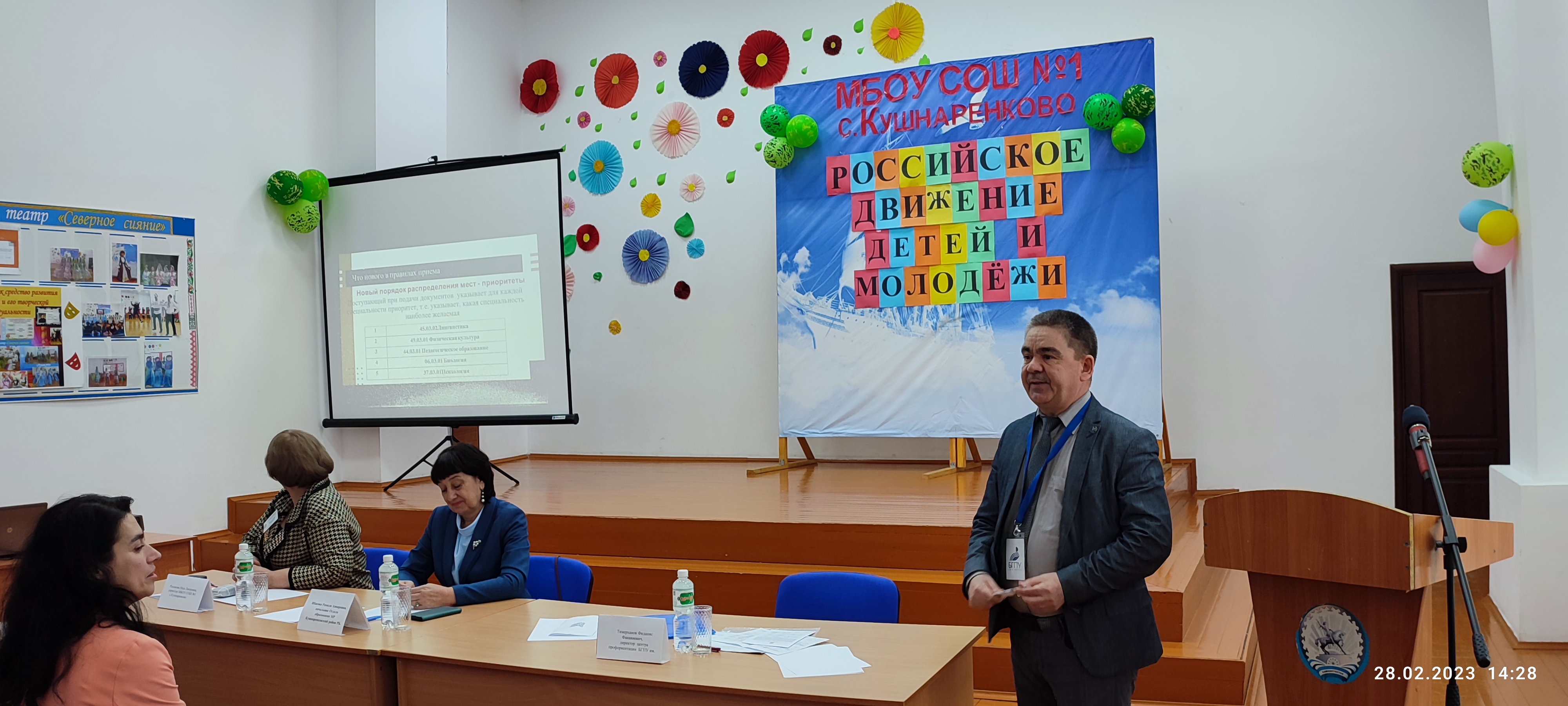 В школе имени Героя Советского Союза В.Д. Паширова с. Кушнаренково директор Центра профориентации  Акмуллинского университета Фиданис Тимерханов встретился с директорами школ района, классными руководителями и учителями-предметниками.