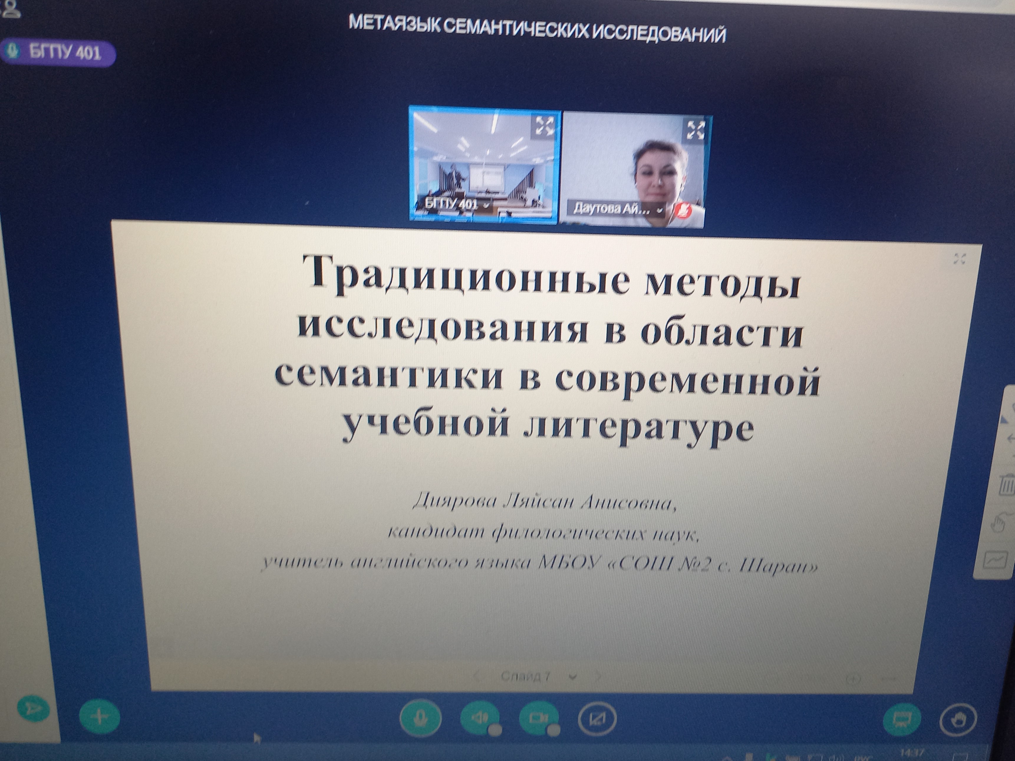 10 марта 2023 года в Институте филологического образования и межкультурных коммуникаций состоялся Республиканский научно-методический семинар «Метаязык семантических исследований», посвященный Году педагога и наставника. На нем выступили участники научной школы «Межкультурная коммуникация в лингвистическом и методическом аспектах», базирующейся на кафедре межкультурной коммуникации и перевода БГПУ им. М. Акмуллы.