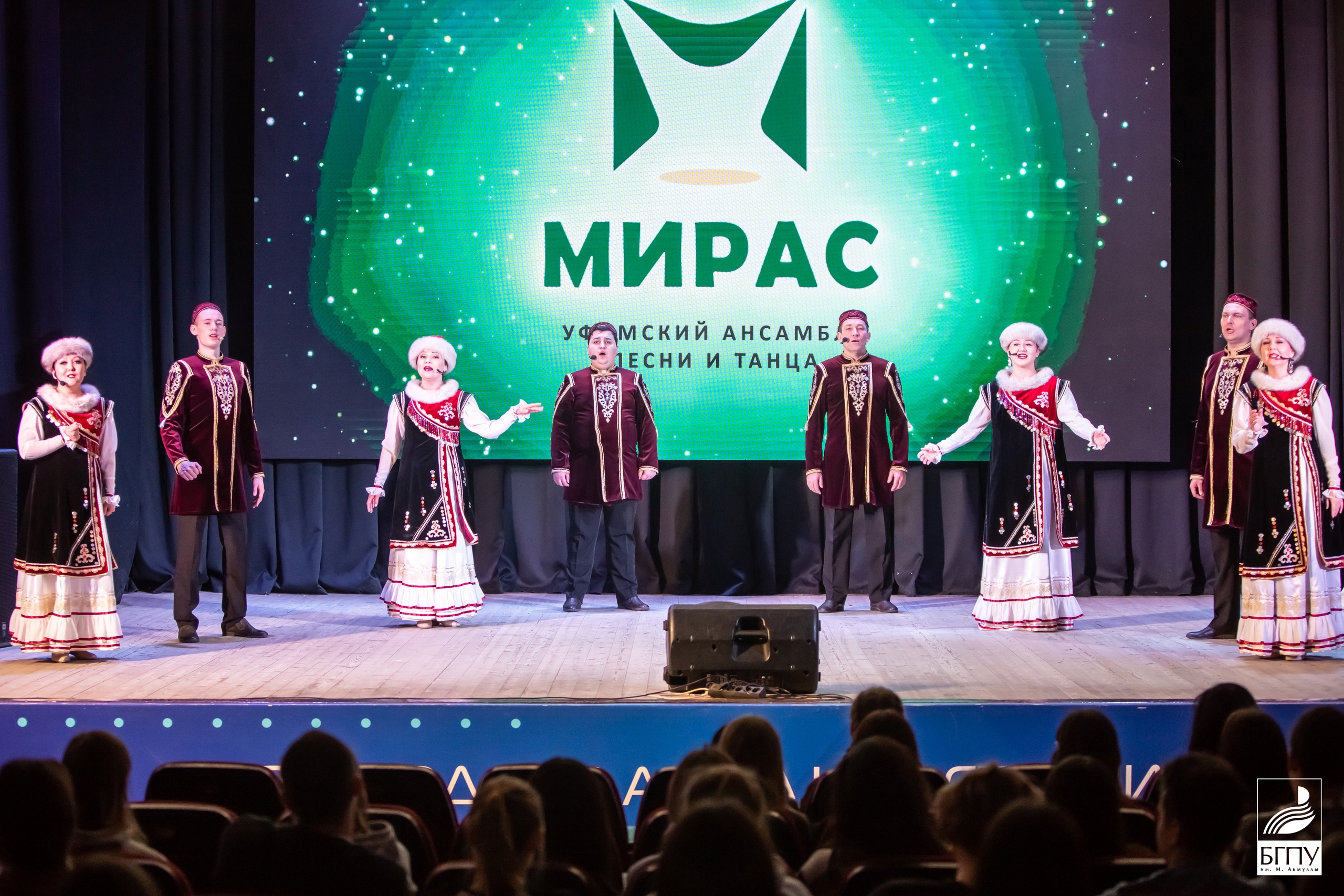 12 апреля в концертном зале Башкирского государственного педагогического университета имени Акмуллы состоялся концерт «Краски мира». Там выступили артисты фольклорного ансамбля песни и танца «Мирас». Зрителями стали студенты факультетов, институтов и колледж БГПУ имени Акмуллы.