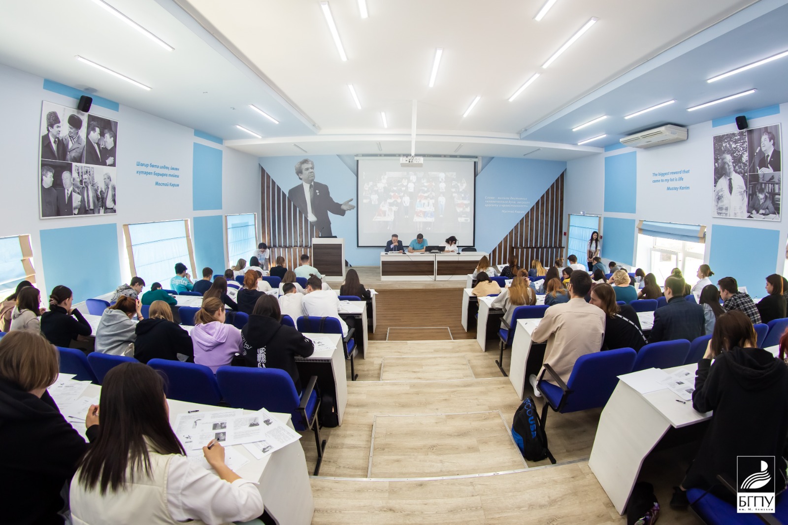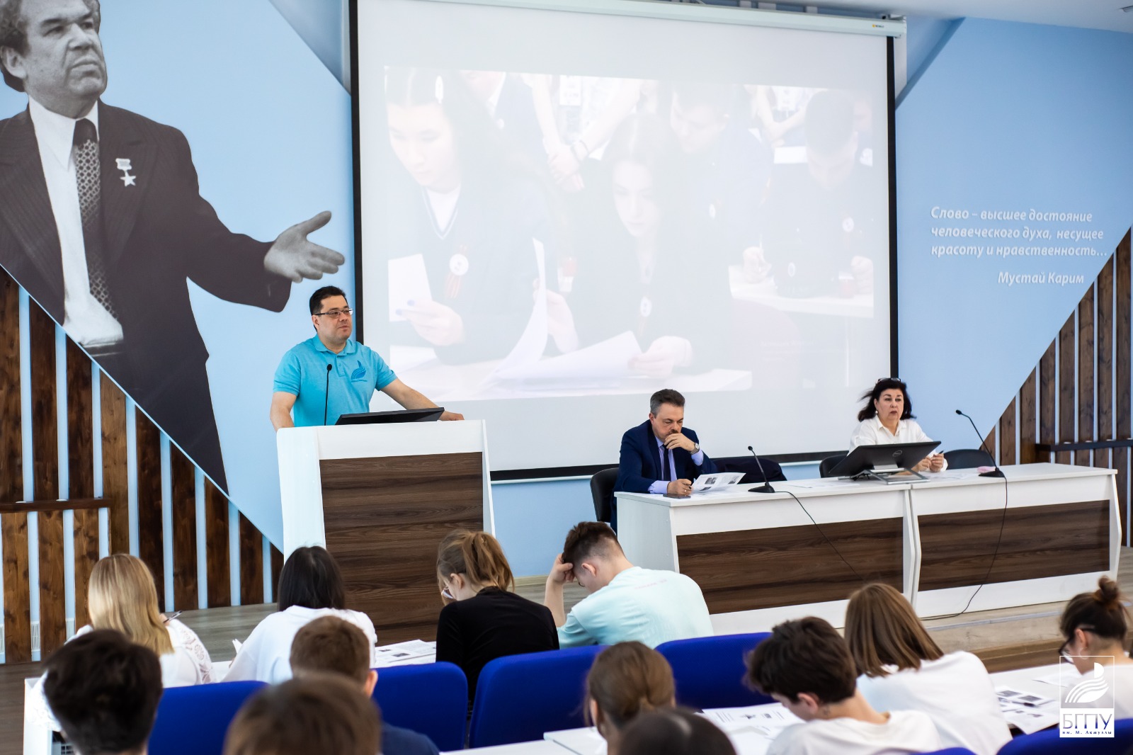 К студентам, собравшимся в именной аудитории Мустая Карима, обратился ректор вуза Салават Сагитов:
