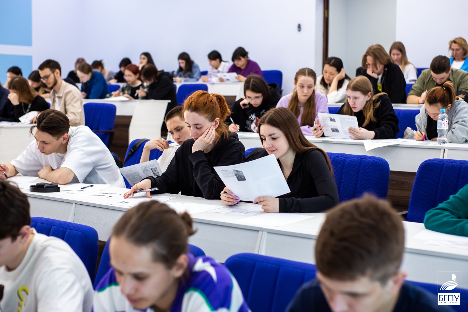 Более 150 студентов БГПУ имени Акмуллы во главе с ректором университета Салаватом Сагитовым разместились на двух площадках 3-го корпуса, чтобы проверить свои знания по истории родного Отечества. «Знать, чтобы помнить» - под таким девизом проходит Международная акция «Диктант Победы». Сегодня, 27 апреля, участников акции приветствовали даже космонавты МКС, пожелавшие успешного написания диктанта.
