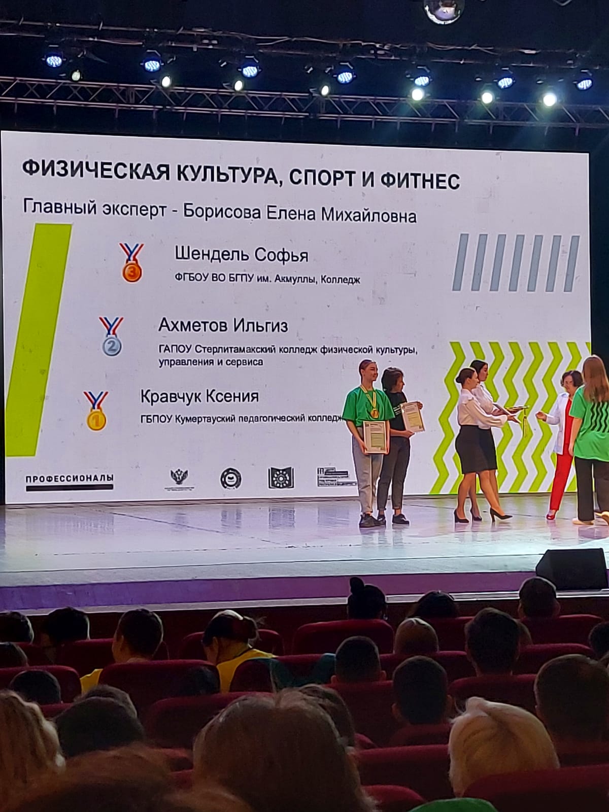 Бронзовая медаль - Шендель Софья, студент колледжа, специальность «Физическая культура»,  эксперт-наставник Мансурова Алина Геннадиевна, преподаватель колледжа