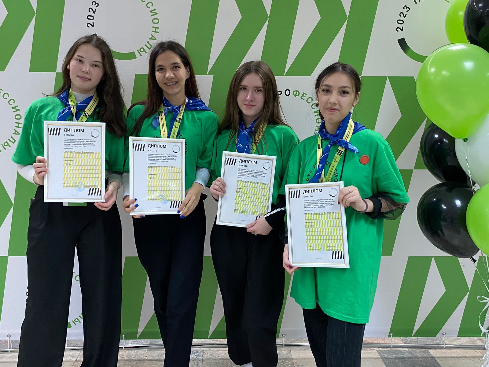 Золотая медаль - Минеева Элина и Сагитова Рената, студенты колледжа, специальность «Туризм»,  эксперт-наставник Салихова Гульнара Камиловна, преподаватель колледжа
